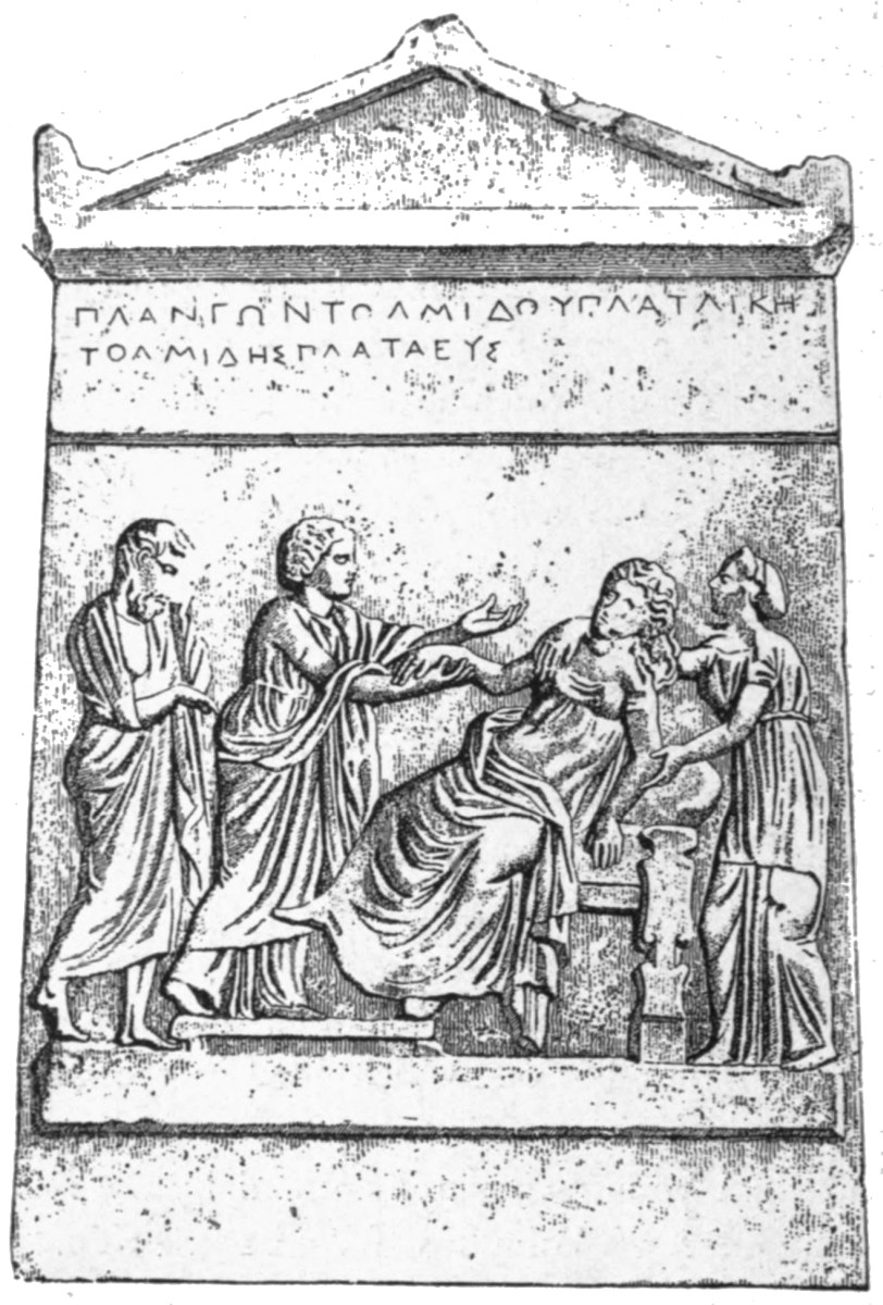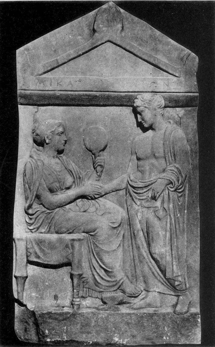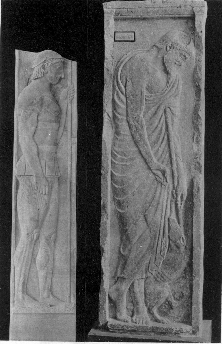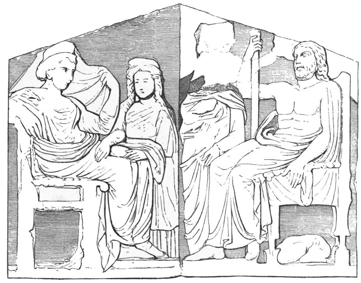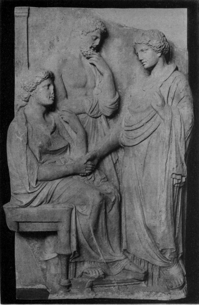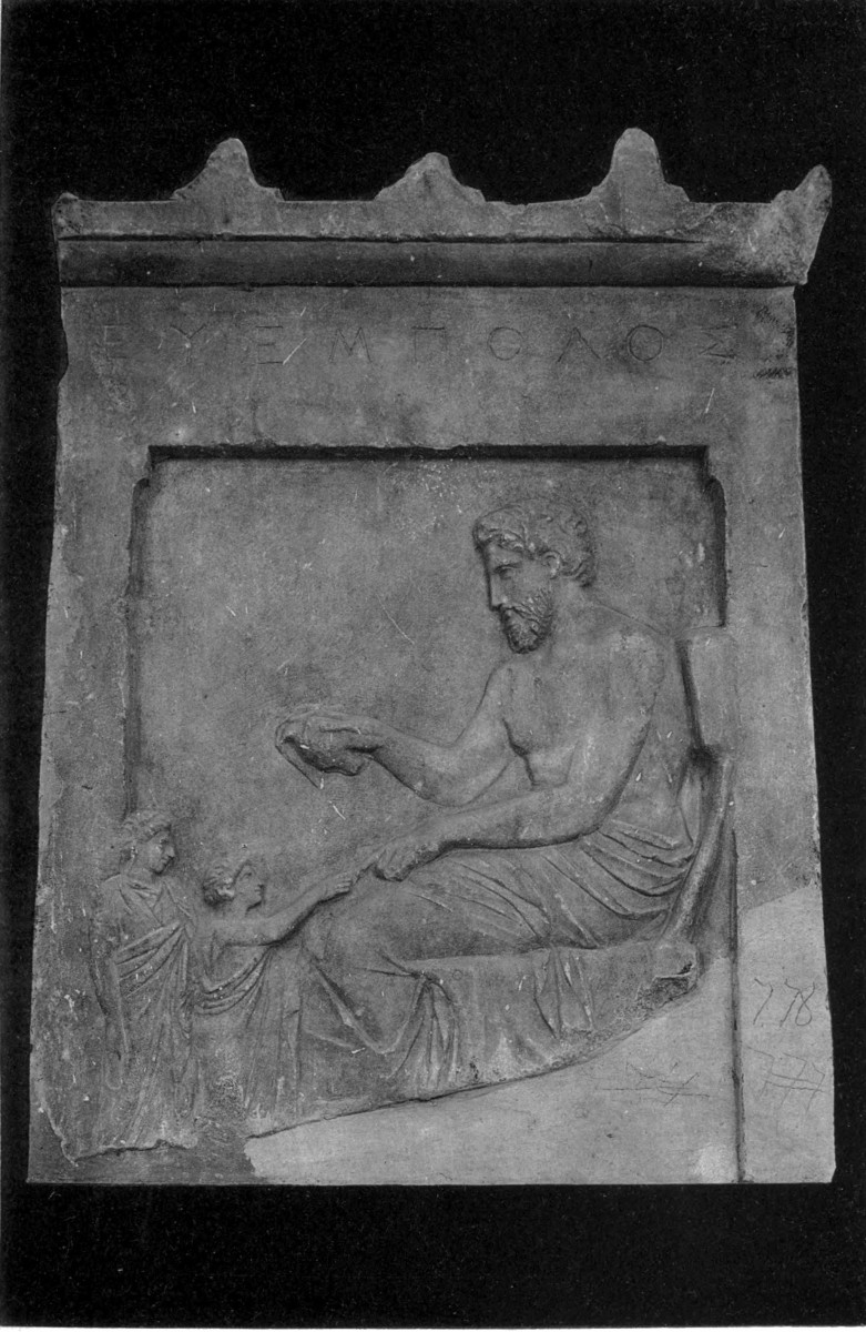 | Distinction of tombs from commemorative tablets, 87. Lines of descent from Spartan reliefs, 88. Athenian banqueting reliefs, 88. Customs of sitting and reclining, 89. Tegean relief, 90. Presence of votaries, 91. Asklepian tablets, 92. Tablets to heroes and to ancestors, 93. The hero as horseman, 94; accompanied by lady, 98. Votive tablets from Tarentum, 100. The hero as foot-soldier, 102; unarmed, 103. |