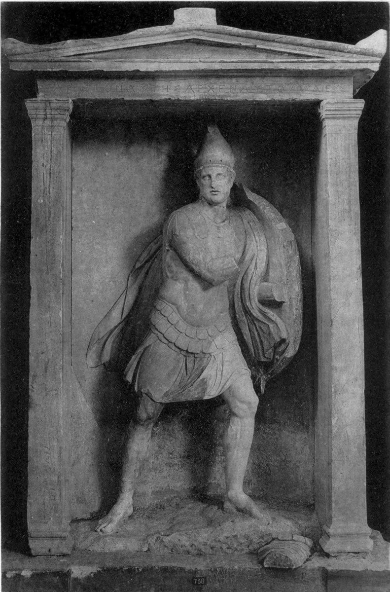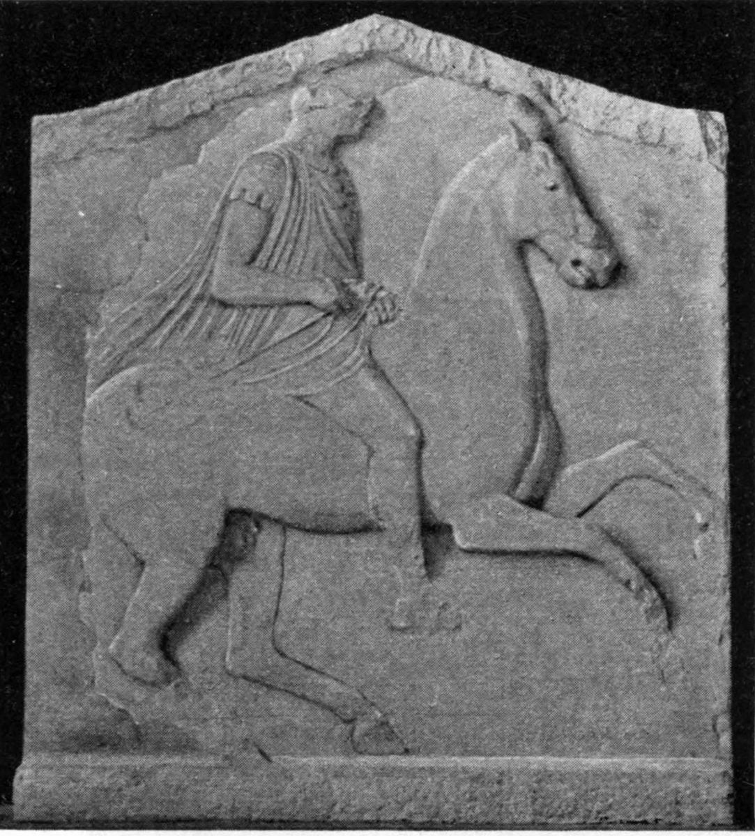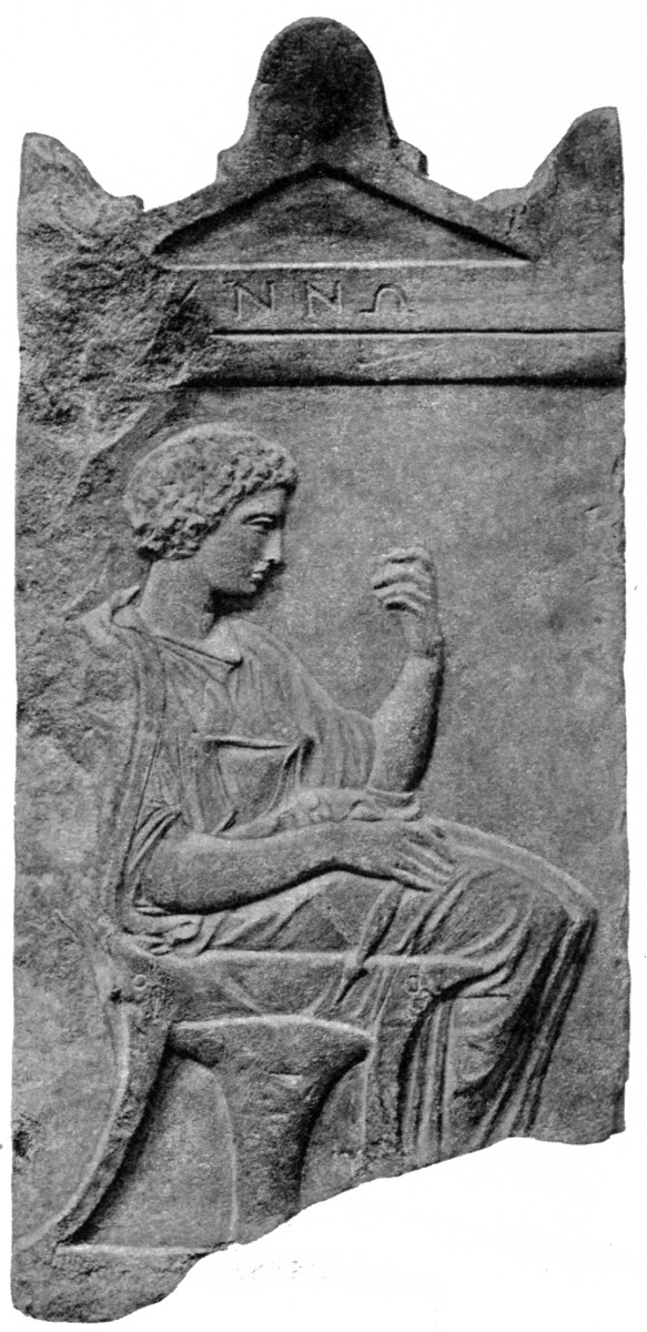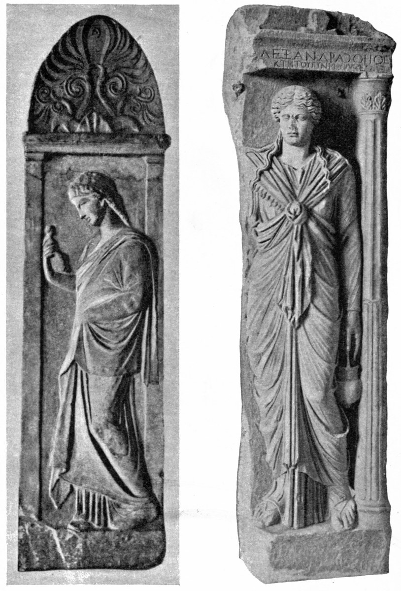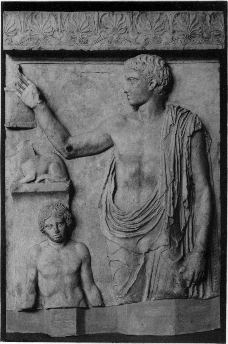 | Portraits of the dead originate in Ionia, 133. Portraits at Athens, 134; their ideal character, 134. Portrait statues, 135; on horseback or on foot, 136; female figures, 137. The dead as Hermes, 138. Statues of mourning women, 139. Portraits on stelae, first period, 140; Aristion, Lyseas, 141; stelae of youths, 143. Second period, stelae of citizens, 145; stelae of warriors, 146; Dexileos, 147; young athletes, 149; hunters, 152; students, 153; shipwrecked men, 154; children, 154; matrons, 157; girls, 158; priestesses, 160. |