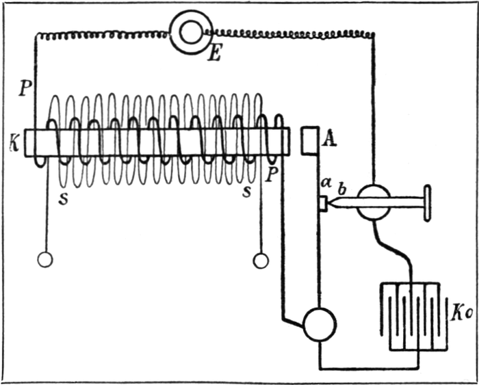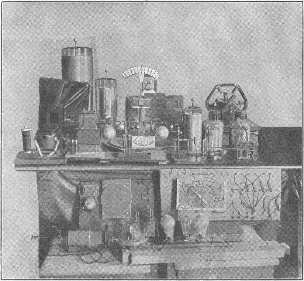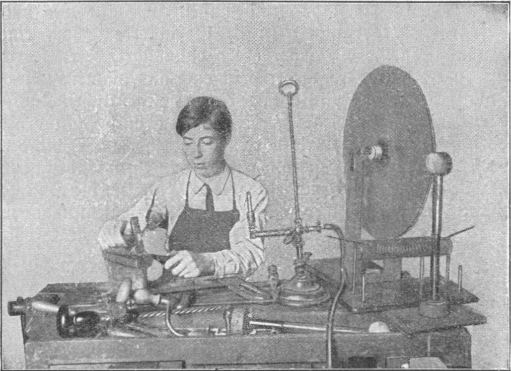 Da er ein kluger und ruhig überlegender Kopf war, so hielt er es für das beste, mit dem Einfachsten anzufangen. „Reibungs- und Influenzelektrizität,“ meinte er, „das wird wohl reichen für einen Vortrag.“ Nun kam ihm aber ein Bedenken: er hatte ja gar nicht genug Apparate für einen solchen Vortrag; aber auch das war schließlich kein Hinderungsgrund für einen Jungen, der dem Grundsatz huldigte: „Hat man keines, so macht man eines.“ Er stellte sich also zusammen, was er an Apparaten schon habe, und was er sich noch machen müsse.