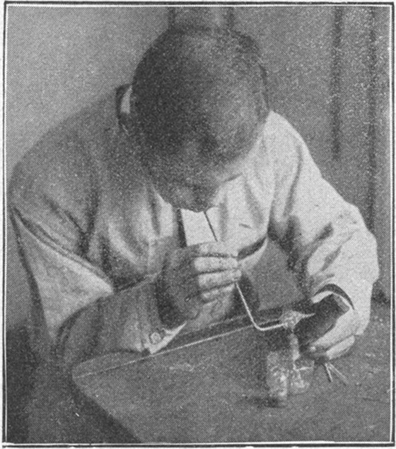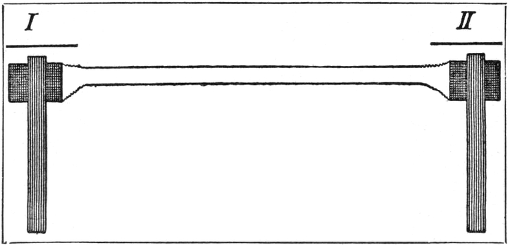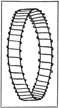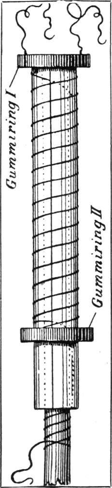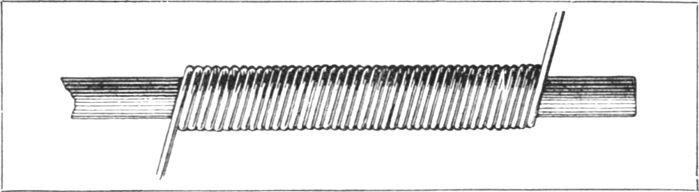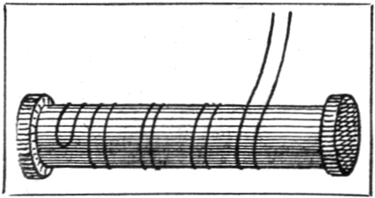 Außerdem brauchen wir eine Anzahl guter Seidenfäden. Nicht alle Sorten sind gleich gut, da sehr oft das zum Färben verwandte Pigment metallhaltig ist. Die äußere Seidenumspinnung der elektrischen Leitungsschnüre (meist grün) ist ziemlich zuverlässig; man wickelt davon einen Strang, etwa 30 bis 40 cm, ab und auf ein Stückchen Karton auf.