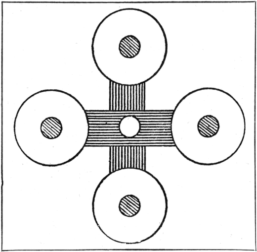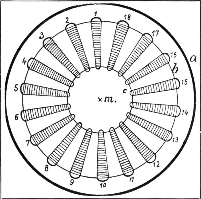 Wir beginnen zunächst mit den Glasscheiben; die Scheiben, die für Reibungselektrisiermaschinen gut verwendet werden können, sind für Influenzmaschinen nicht immer die geeignetsten; die Hauptsache ist, daß das Glas gut isoliert. Wir suchen zuerst, ob wir in unserem Glasvorrat etwas Geeignetes finden[1]; wenn nicht, dann suchen wir bei einem Glaser die beste Glassorte aus, wobei auch darauf zu achten ist, daß die Glastafeln möglichst eben sind. Wir lassen uns nun zwei kreisrunde Scheiben schneiden, deren Durchmesser womöglich 60 cm, keinesfalls aber weniger als 30 cm betragen darf. Wer ganz sicher[S. 20] gehen will und größere Auslagen nicht scheut, besorgt sich die Glasscheiben bei einem Mechaniker oder von Warbrunn, Quilitz u. Co. zu Berlin, welche Firma auch ausgezeichnete Gläser für Leidener Flaschen liefert.