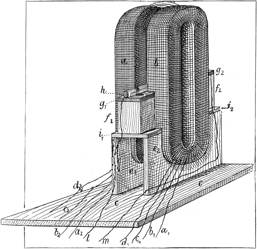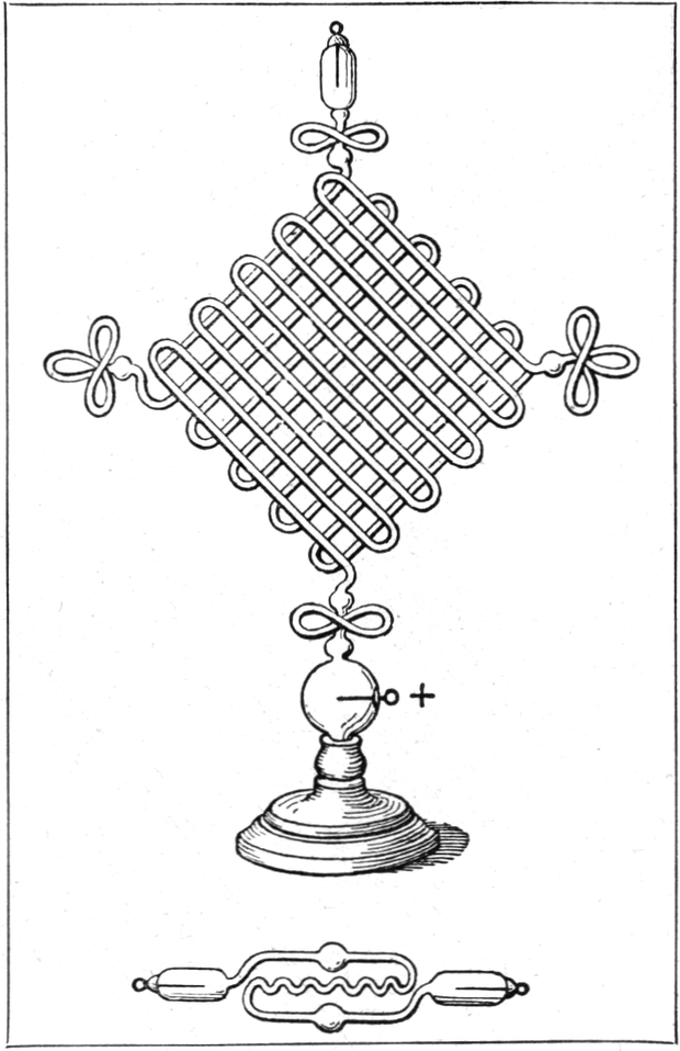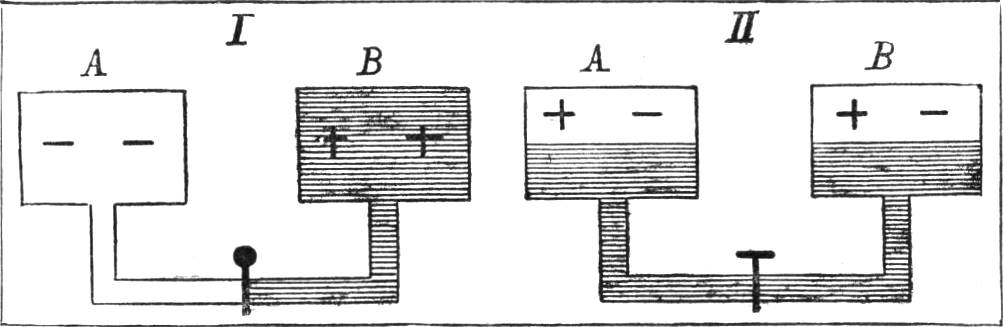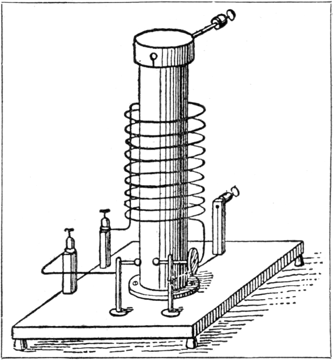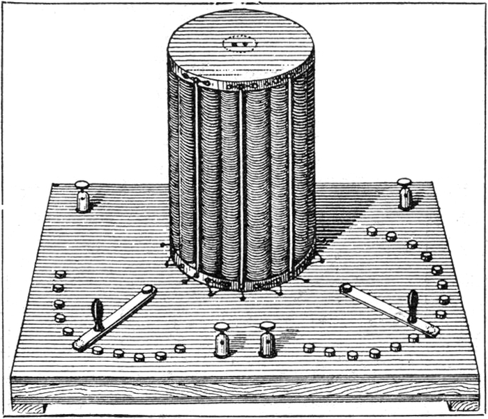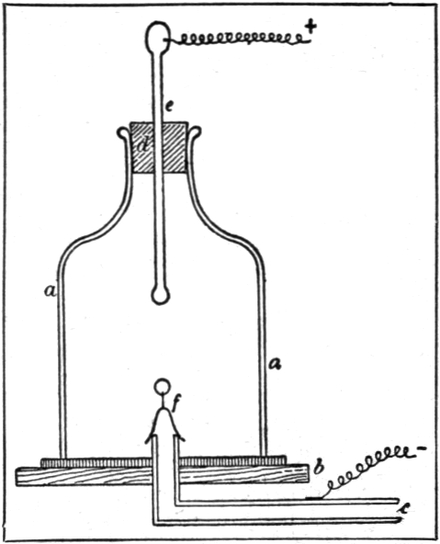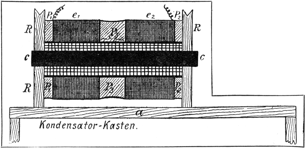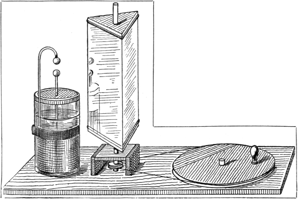 Eine Reibungselektrisiermaschine, ein Elektrophor, ein Elektroskop und zwei Leidener Flaschen hatte er sich schon hergestellt; es fehlten ihm nur noch eine Influenzelektrisiermaschine und einige zur Demonstration besonders geeignete Apparate. So brauchte er zwei genügend große Gestelle zum Aufhängen von elektrischen Pendeln und einen sogenannten Konduktor, um die elektrische Verteilung zeigen zu können, ferner einen Apparat zum Nachweis der ausschließlich oberflächlichen Verteilung der Elektrizität auf Leitern. Außerdem wollte er auch zeigen, daß die Elektrizität Wärme erzeugen könne; auch hierzu mußte er sich einen geeigneten Apparat machen, und die Franklinsche Tafel durfte natürlich nicht fehlen.