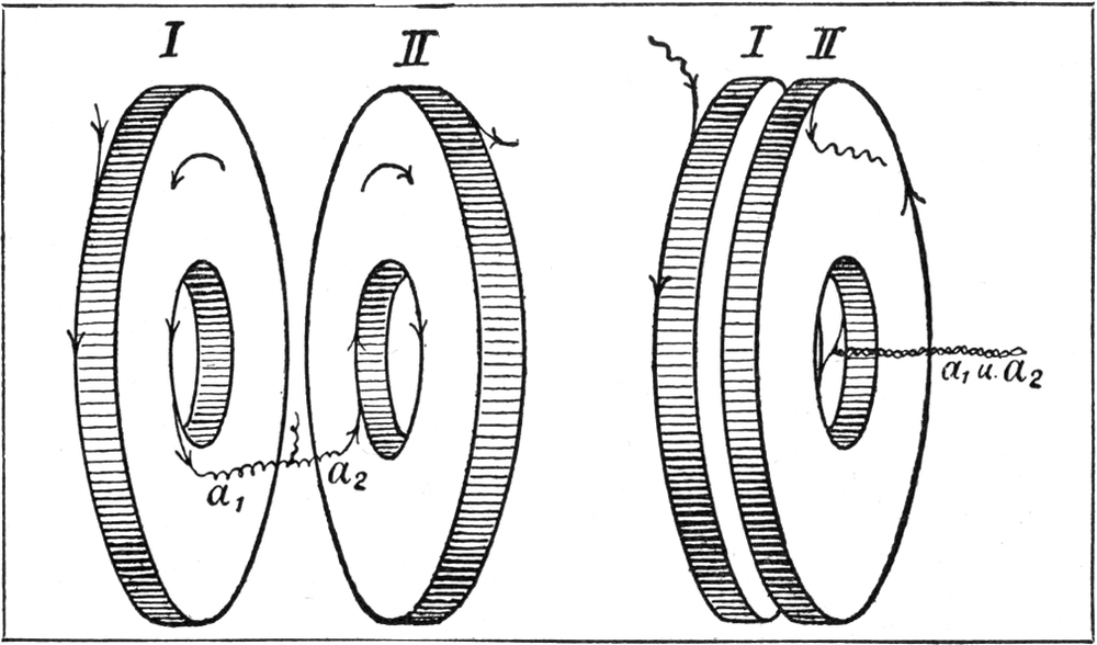 Rudi brauchte nun zu seinem Vortrag noch eine Influenzelektrisiermaschine; diese lieh er sich einstweilen bei einem Schulkameraden, weil er die Anfertigung dieser Maschine für später aufschieben mußte. Da es jedoch für manchen jungen Bastler von Interesse sein wird, zu erfahren, wie man die verschiedenen Schwierigkeiten, die sich der Selbstanfertigung einer Influenzmaschine entgegenstellen, leicht umgehen kann, so wollen wir schon jetzt davon eine Beschreibung geben.