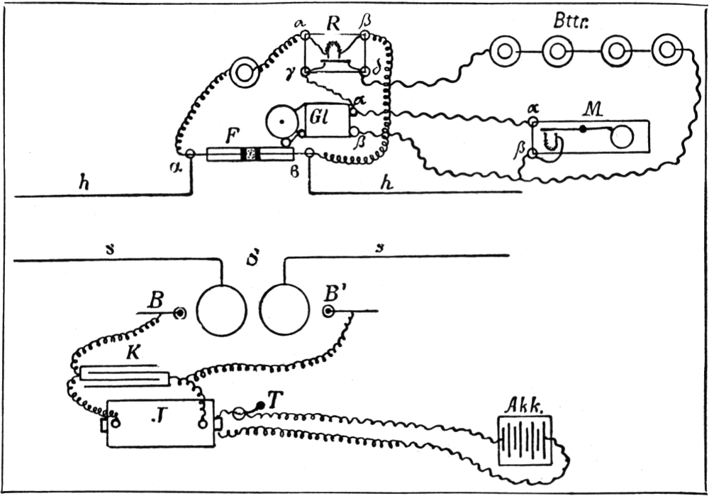 s war ein schwüler, heißer Sonntagnachmittag, als unser Rudi in seinem Dachkämmerchen, das er sich zur Werkstätte eingerichtet hatte, unwillig die Werkzeuge beiseite legte: „Heute ist es da oben zu heiß,“ seufzte er und ging hinunter in die Wohnung, um zu sehen, was denn seine Geschwister machten. Er hatte noch zwei ältere Schwestern und einen jüngeren Bruder; er fand sie alle drei beisammensitzen und sich eifrig damit beschäftigen, eine Siegellackstange zu reiben und dann damit kleine Papierschnitzelchen anzuziehen. Mit einiger Selbstgefälligkeit fragte er, ob sie denn überhaupt wüßten, was sie da machten, und woher das käme, daß diese Papierschnitzel von dem geriebenen Siegellack angezogen würden. „Ja, der Siegellack wird elektrisch, und die Elektrizität zieht an,“ meinte eine der Schwestern. Ob dieser naiven Erklärung lachte Rudi seine Schwester aus, die ihm nun erwiderte: „Wenn du alles Elektrische so gut verstehst, so könntest du uns auch ab und zu etwas davon erklären; aber du sitzest den ganzen Tag in deiner Dachkammer und läßt uns nichts wissen und nichts sehen von deinen Experimenten.“ — „Und wenn man einmal hinaufkommt,“ meinte die jüngere Schwester, „dann sieht man überall mit großen Buchstaben geschrieben: ‚Berühren gefährlich‘, oder ‚Vorsicht, geladen‘, oder ‚Gift‘; man traut sich kaum, etwas anzusehen.“ — „Ja, das ist gar nicht schön von dir,“ fiel der kleine Karl ein, und nun entspann sich ein kleiner Streit zwischen den Kindern, in dem Rudi angeschuldigt wurde, daß er seine Geschwister vernachlässige. Da kam zur rechten Zeit die Mutter dazwischen und schlichtete den Streit. Sie machte nun Rudi den Vorschlag, er solle in einer Reihe von kleinen Experimentalvorträgen[S. 2] sie über die Geheimnisse seiner Spezialwissenschaft belehren.