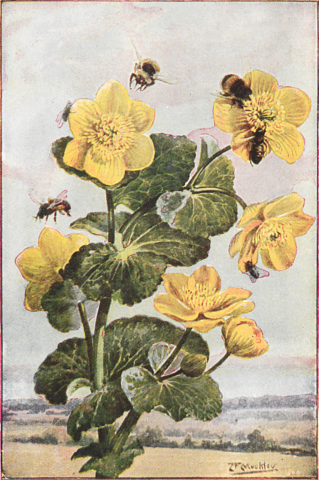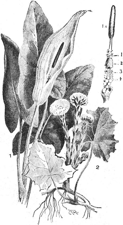 Das Scharbockskraut speichert, wie ihr euch erinnern werdet, ihre Nahrung in weißen Knollen auf; diese entstehen aus Knospen, die mit so viel Nahrung versehen sind, daß sie dadurch stark verdickt werden. Die Sumpfdotterblume und die schöne gelbe Schwertlilie, die am Flusse wächst, brauchen den unterirdischen Stamm als Speicher. Man muß den Stamm der Sumpfdotterblume verfolgen, bis man bis dicht an die Wurzeln kommt, und dort wird man den dicken Knoten finden, der durch den ganzen Winter hindurch weiterlebt und im Frühling frische Blätter treibt.