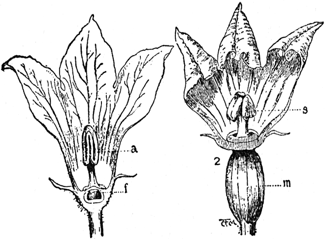 Wenn man diese Zwiebel im[S. 59] Frühling ausgräbt, steht der Blütenstengel aus deren Mitte hervor, und wenn man die schuppigen Blätter fortnimmt, so wird man noch eine sehr kleine Knospe dicht unten am Blütenstengel finden. Wenn man eine andere Zwiebel im Herbst ausgräbt, so ist der Blütenstengel verwelkt, und die kleine Knospe sieht aus der Spitze der Zwiebel hervor.