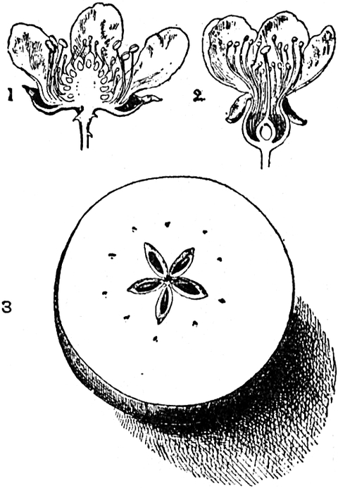 Ganz eigenartig wird der Fall, wenn der Fruchtknoten sich zu einer Schlehe oder Kirsche oder einer anderen glänzenden Beere auswächst, wie es bei den Beeren des Schwarzdorns und des Geißblatts der Fall ist. Denn die Vögel kommen, um die hübsche Frucht zu fressen, und wenn sie dieselbe dann auf irgend einen Baum in der Nähe tragen, so lassen sie den Stein, d. h. also den Samen, an einem anderen Platze fallen. Oder sie fressen die Beere, und die harten Samen gehen durch den Körper und werden irgendwo in weiter Entfernung wieder ausgeschieden.