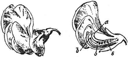 Wenn du die Blüte zerlegst, so wirst du sehen, weshalb das Schiffchen hinunterging. An jedem Flügel ist eine Art Knopf, der in eine Höhlung in der Seite des Schiffchens hineinpaßt. Wenn die Biene sich auf den Flügeln niederläßt, so drückt sie dieselben durch ihr Gewicht hinunter. Die Flügel drängen ihrerseits das Schiffchen hinab, und die Staubbeutel schlagen gegen die Brust der Biene. Und so fliegt diese zur nächsten Blüte, bedeckt mit Blütenstaub.