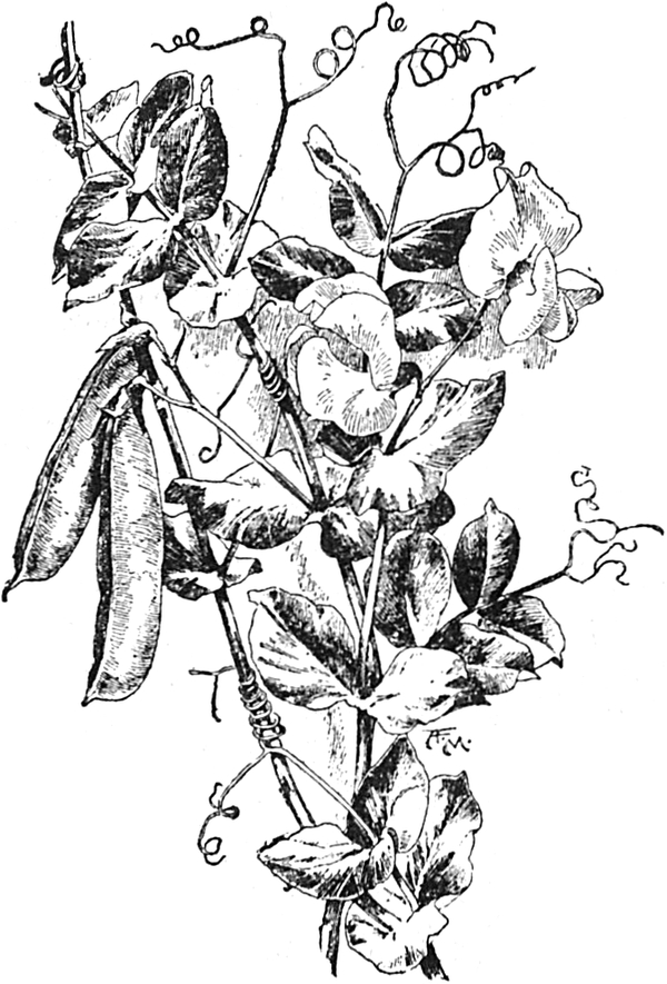Wenn ihr die Augen offen haltet, so müßt ihr bemerkt haben, als ihr die Blüten der Erbse und der Stangenbohnen[S. 51] pflücktet, daß sie an Stangen emporklettern, die für sie eingesteckt werden. Aber vermutlich habt ihr nicht darüber nachgedacht, warum sie klettern und wie sie klettern.