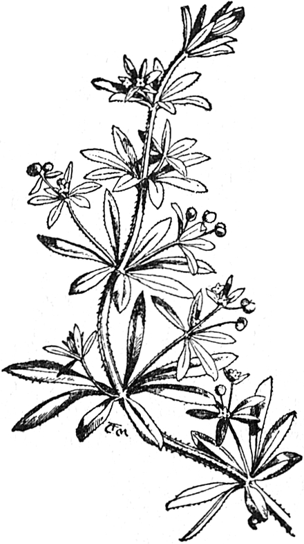 Ihr kennt doch wohl das kletternde Labkraut, welches überall an den Hecken wächst. Seine schmalen grünen Blätter stehen sternartig um den Stamm herum, und es hat sehr kleine weiße Blüten. Der Stamm, die Blätter und die Samenkapseln sind mit winzigen Häkchen übersät, so daß sie sich an der Hand festklammern, wenn man die Pflanze pflückt. Es ist eine sehr schwache Pflanze, aber sie klammert sich mit ihren Haken an anderen Gewächsen fest, die stärker sind, und richtet sich so auf.