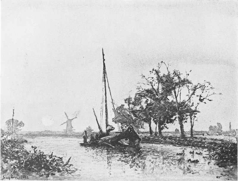 JONGKIND and Boudin are the links which connect the Barbizon men of 1830 to the Impressionist group of 1870. Although little public fame came to them during their lifetime, they had considerable influence upon the younger landscape-painters of their generation. Both were artists of great ability as well as of enormous industry; both suffered from continued misfortune and neglect. Yet no collection illustrating the history of Impressionism can exclude examples of the Dutch Jongkind, or of Boudin, a follower of Corot and master of Monet. Jongkind’s pictures are doubling, nay trebling, in value, and the records of the public sale-rooms are astounding evidences of the increasing appreciation of Boudin by modern collectors.