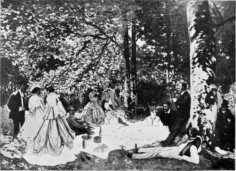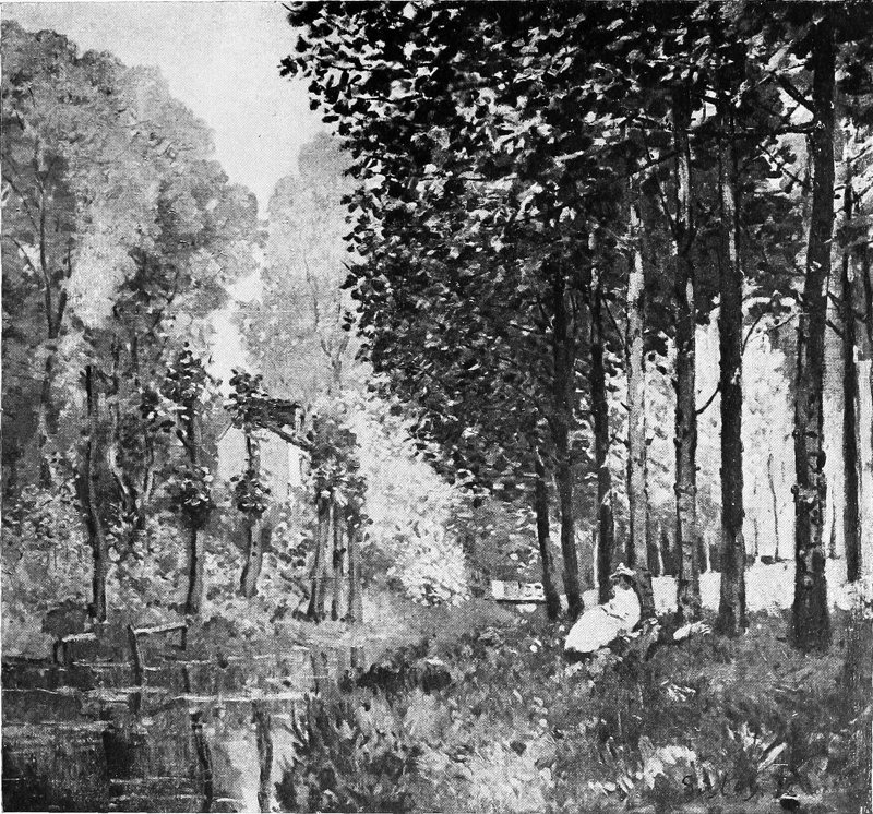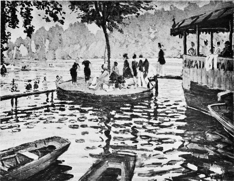 Jongkind and Boudin are two little masters not to be forgotten. Not altogether Impressionists themselves, they were in close affinity to the school upon which they had much influence. Men of uncommon character and earnestness of purpose, their art was sincere. In themselves they were interesting, for, richly endowed with natural talents, they were for the most part poor beyond belief in material wealth. Inspired by a genuine love for Nature in all her aspects they never reached the high technique of their English predecessors, and were far surpassed by Claude Monet and his group. Forerunners in the evolution of the school of “plein air” painting, a reference is necessary to them in order to follow the development of the school as a whole.