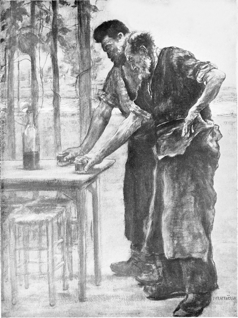 The hostesses are of a type apart, and no other country but France produces them in such numbers. “Mères des artistes,” they are full of pride with their anecdotes of celebrated lodgers. Peasants of the best class, admired and respected by all who come into contact with them, they are remembered with affection. The peaceful holidays spent in these lovely villages represent much of the brighter side of the art-student’s career, and memories mix with regrets as 13one recalls a youth spent in that beloved country of art—la belle France.
