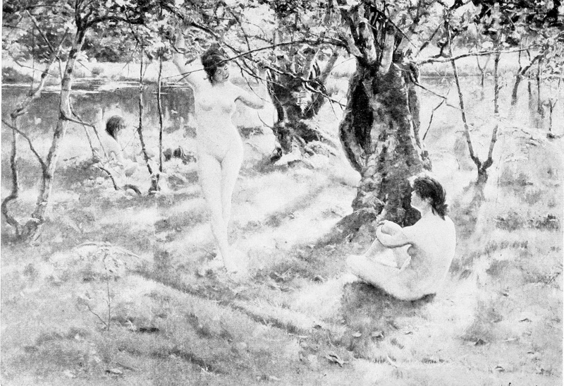 IT may perhaps be interesting to the readers of this book to give a short account of its origin. From the earliest days of my pupilage to art I had been instinctively drawn towards the paintings of Turner, Corot, Constable, Bonington, and Watts, with an intense admiration for their manner in viewing, and methods of recreating, nature upon their canvases; and in later years I had been fascinated by the works of more modern artists, such as La Thangue, George Clausen, Edward Stott, and Robert Meyerheim. In 1891, a student in Paris, I found myself face to face with a beautiful development of landscape painting, which was quite new to me. “Impressionism,” together with its numerous progeny of eccentric offshoots, was at the time causing a great furore in the schools. Curiously enough I had been charged with copying Monet’s style long before I had seen his actual work, so that my conversion into an enthusiastic Impressionist was short, in fact, an instantaneous process.