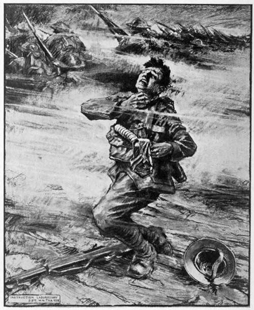 Lieut. W. G. Thayer, of the Gas Defense Division, U. S. Army, is the artist of the drawing here reproduced which was designed for the purpose of bringing home the necessity of care in all that pertains to the use and manufacture of the gas mask.