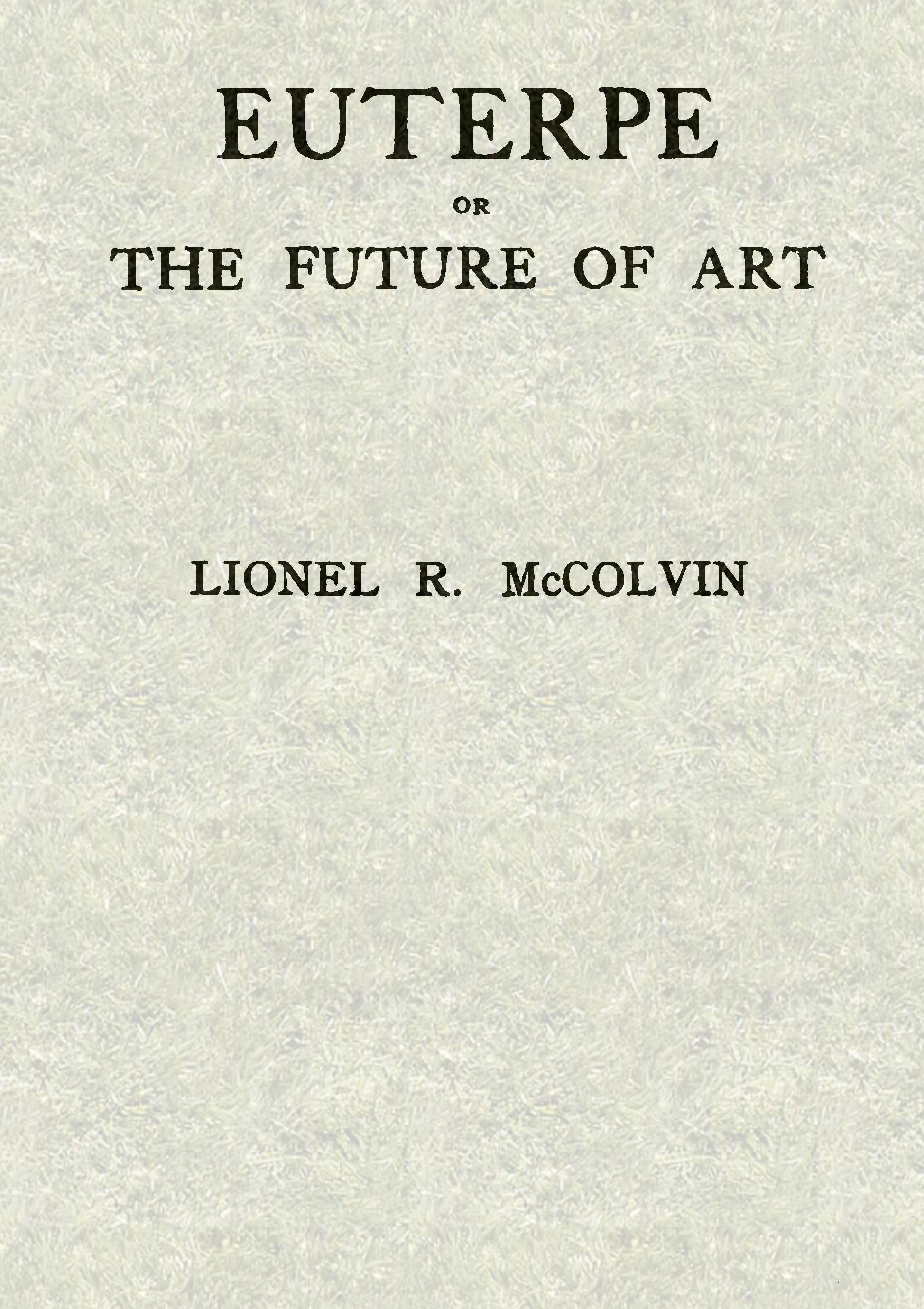 Euterpe, or the Future of Art. By Lionel R. McColvin, author of “The Theory of Book-Selection.”