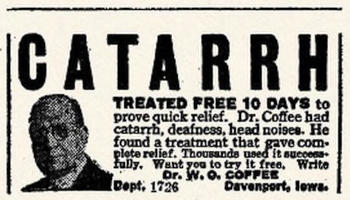 TREATED FREE 10 DAYS to prove quick relief. Dr. Coffee had catarrh, deafness, head noises. He found a treatment that gave complete relief. Thousands used it successfully. Want you to try it free. Write