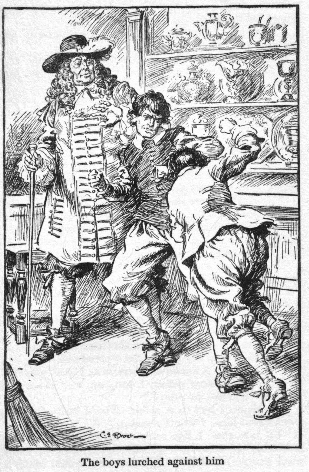 There were three apprentices who lived in the house, two of them sleeping under the shop counter. They rather despised the new boy. Martin had to come early in the morning to take down the shutters and sweep out the shop. All day he was running errands between the shop and the workrooms in Foster Lane, or carrying parcels to customers, or fetching things for Mr. Slocum and the housekeeper.