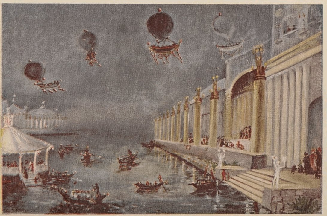 28The next view presented the Elephant rising from the earth, drawn heavenward by a huge balloon.