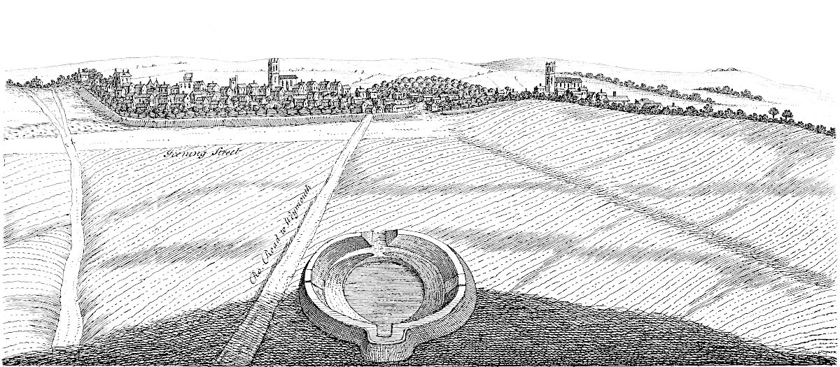 The 20th of October, 1726, I traced the Cardike round the out-skirts of Sir William Ellys’s park of Nockton: it runs near the site of the old priory, whose ruins are just visible: it bounds the park entirely on the fen side, and is very perfect thereabouts; the high-country streams from Dunston, and others, running along it. We saw where it crossed a marshy valley, and reached the opposite high ground in its course to Washenburgh. A well of the old priory is well preserved, remarkably good water.