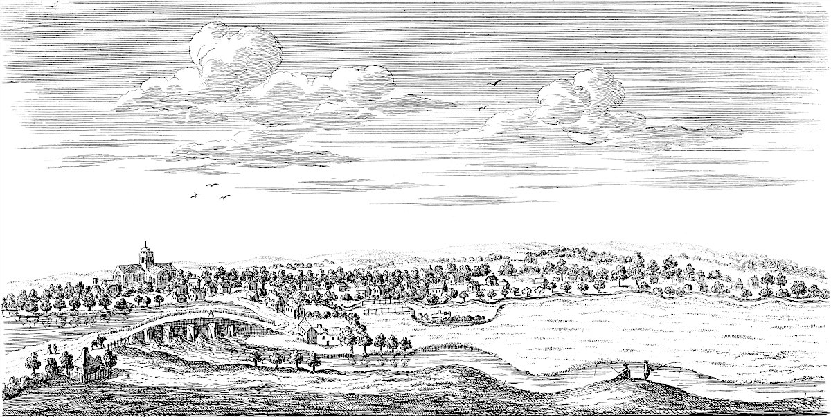 From Spalding, according to my sentiments, this road went towards Herring bridge (the word retaining some semblance of antiquity) upon Surflet river, so along the division between the wapentakes of Kirton and Aveland, near Wrigbolt and Cressy-hall, to the end of Brig-end causeway at Donington. Here, Holland brig or Brig-end causeway has all the requisites that can ascertain it to be a Roman work, being strait and laid with a solid bed of stone: the present indeed is repaired every year, but we have much reason to think the first projection of it through this broad morass was no less than Roman. From thence it went to Sleford; then it seems to have gone across the heath, and to have fallen in with the great Hermen street at a remarkable place called Biard’s leap: from thence possibly it was carried, or was designed to be, by Stretleythorp and Brentbroughton over the Witham to Crocolana upon the foss-way; then over the Trent into Nottinghamshire, where it answers in a line with the road to Tuxford and Worksop; and so on perhaps to the Irish sea, whereby it would become a great parallel to the Watling street running across the kingdom, as it does, from south-east to north-west. At Sleaford I am inclinable to think another road came from Banovallum, or Horn castle, to the east of the river Bane southward by les Yates, and so crossed the Witham by Chapelhill and the Cardike somewhere about Kyme: or else crossed the Witham at the Hermitage, so went by Swinshed north end to Donington: this principal road we speak of on the other end seems to go from Ely by Soham and Bury to the German ocean. I am not ashamed to offer my conjecture to the curious, however slender its foundation may be, if only as a hint for a future search: but it seems to me very probable, that if it was not fully executed by the Romans, they intended it, and have in part manifestly done it. I conceit it crosses the Icening street at Ikesworth near Bury, then goes to Bretenham, the Combretonium; but with that country of Suffolk I am at present perfectly unacquainted. Return we to Holland.