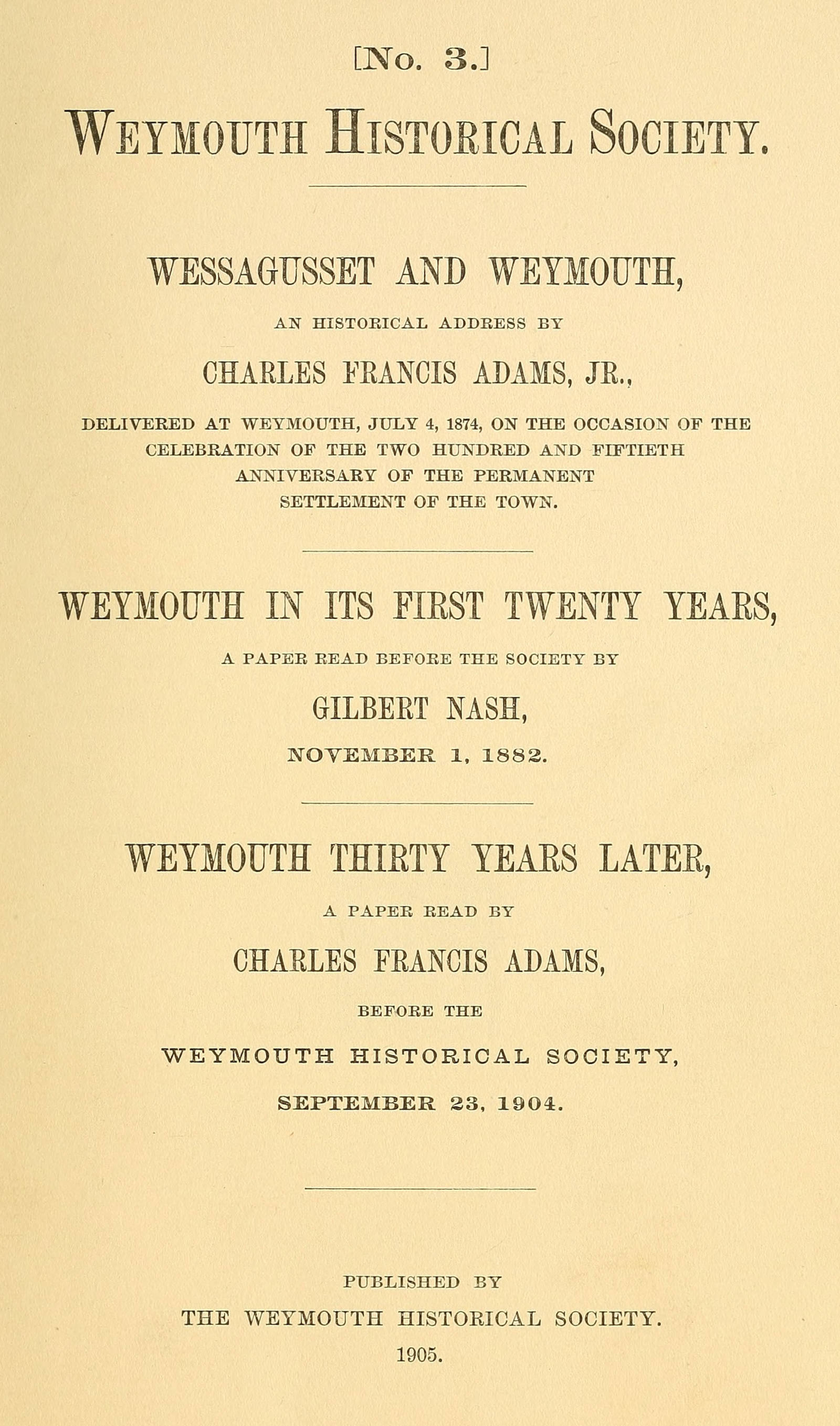 The Project Gutenberg eBook of Wessagusset and Weymouth, by Charles Francis Adams