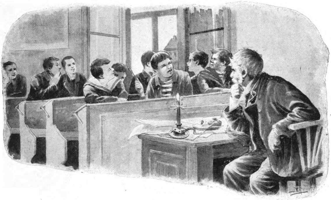 A kapun csak úgy dűlt kifelé a sok gyerek. Fele jobbra, fele balra oszlott. És tanárok jöttek köztük és ilyenkor lerepültek a kis kalapok. És mindnyája fáradtan, éhesen ballagott a ragyogóan napfényes utcán. Egy kis kábultság járt a fejükben, mely csak nagy lassan oszladozott a sok vidám és életet jelentő látványra, amit az utca nyujt. Mintha kiszabadult kis rabok lettek volna, úgy támolyogtak a sok levegőn és a sok napfényen, úgy kószáltak bele ebbe a lármás, friss, mozgalmas városba, amely számukra nem volt egyéb, mint kocsik, lóvasutak, utcák, boltok zűrzavaros keveréke, amelyben haza kellett találni.