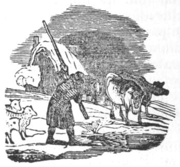 The Indian, on the other hand, appeared overjoyed at the success of his manœuvre—and never did a human being frisk about and gesticulate with greater animation. We have heard, or read, of a professor of signs: and supposing such a character were wanted, the selection could not—or, at least should not—be a matter of difficulty, so long as even a remnant remains of the aborigines of North America. All travellers agree in describing their gestures as highly dignified, eloquent, and intelligent: and we have the authority of Mr. M’Dougal for saying, that the hero of the present strictly authentic tale, proved himself to be a perfect master of the art. The restoration of the child—the beauty and wide extent of the prairies, and various other circumstances combined—flashed across our countryman’s mind—operating conviction where jealously and distrust had lurked before. Mr. M’Dougal, in a trice, examined the soil, and immediately saw the propriety of the advice given by the untutored one. By a sort of tacit agreement, a day was fixed for the removal of the materials of our countryman’s cabin, goods and chattels;—and the Indian, true to his word, brought a detachment of his tribe to assist in one of the most romantic “flittings” that ever was undertaken either in the old or new world. In a few days a roomy log-house was fashioned, and a garden formed[237] in a convenient section of the beautiful prairie, from which the smoke was seen curling, and the woodpecker tapping at no great distance. M’Dougal was greatly pleased at the change—and no wonder, seeing that he could almost boast of a body-guard as bold as the bowmen of Robin Hood. His Indian friend speedily became a sort of foster brother, and his tribe as faithful as the most attached Tail of Gillies that ever surrounded a Highland chieftain. Even the stupid kine lowed, on finding themselves suddenly transferred to a boundless range of richest pasture:—and, up to the date of the last advices, were improving rapidly in condition, and increasing in numbers.