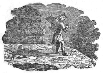 “Towards evening, the men became exhausted with hunger. They were in the heart of a solitary wilderness, and every circumstance was calculated to produce the greatest dejection of spirit. After making great exertions to reach the point designated, where they were to encamp upon their arrival, they met their hunter, who had been again unsuccessful. Feeling for himself and his comrades every emotion of a noble heart, he was alarmed for their situation. The hunter declared he had used every exertion in pursuit of game, but all his attempts were of no avail; that the whole forest appeared to him to be entirely destitute both of birds and beasts! Under these awful apprehensions of starvation, he knew that it would be a vain attempt to reach the settlement;—he trembled, and shed tears. Captain Bryan, at this critical juncture, felt his spirits roused at the reflection of their desperate situation; he thrust his jacob-staff in the earth, and ordered his men to prepare a camp, and make a good fire; he seizes the gun and ammunition[51] of the unsuccessful hunter, and darted forth in pursuit of game. The weather had become exceedingly cold, for it was in the depth of winter—every rivulet was bound in ice. He had not proceeded far before he was gratified with the cheering sight of three elks, making towards him. He succeeded in killing two, and, shortly after, a bear. He now called for his men, and ordered his game to be carried to the camp. No one, but those similarly situated, can conceive the feelings excited on such an occasion.