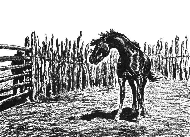 A few weeks went by when once in a while and every few days, one of the old horses he was pasturing with, was caught, led out, a rifle shot was heard, and he'd never be seen no more. Other old horses was brought in and they'd pasture on with him till one by one they'd also disappear only to be replaced by more of 'em.