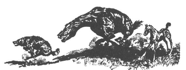 To him, the cayote was just another stump, but more interesting than the others he'd kicked at on account that this stump moved, and that promised a lot of excitement. With a bowed neck and kinked tail Smoky trotted up towards the cayote. The cayote just set there and waited and when the colt got to within a few feet from him, he started away and just fast enough so as the colt's curiosity would make him follow. If he could only get the colt over the ridge and out of his mammy's sight.