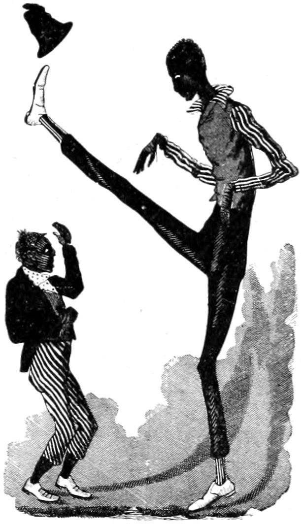 I can remember, as a youngster even before my school days began, my father asking me if I wanted to be a minstrel? I knew that my mother was averse to it and, as they both looked at me awaiting my reply, I vehemently said NO; that was the first lie I ever told. I have done better subsequently, but they have no bearing on this matter. When I was about six or eight years of age, my father, wishing to celebrate the occasion in a fitting manner, took me down town (Philadelphia) and giving me my choice to go in one direction and see “Jack the Giant Killer,” or take another route and see the minstrels. I had heard a whole lot about the youthful prodigy who made a business of trimming big husky gents for the sake of getting an appetite that he might better enjoy his meals, and confess to a feeling of curiosity; but it was the “nigger singers” for mine, and it was there that I obtained my first recollection of any individual performer. It was Bobby Newcomb doing Topsy. Whether it was an “Uncle Tom” show, with which the late minstrel was prominently identified at one time, or whether it was a burletta on Mrs. Stowe’s immortal work, I never learned, but Newcomb’s dress, a ragbag affair, I remember distinctly, subsequently, one made from an American flag, finishing with the well-known suit of white duck in knee-breeches. That was the beginning. I decided then that a minstrel’s life was the life for me, and for years I importuned my father to take me on the road with him, finally obtaining a promise to go the next time he took a show out. This was somewhat hazy, but I clung to it tenaciously, and when in July, 1890, he organized the World’s Fair Minstrels, my happiness was unbounded. I was in Philadelphia at the time, passing cigars and tobacco over the counter of a Smoke Emporium presided over by Lew Simmons, one[2] of the oldest active minstrels in harness to-day; observe the date again, please. July, 1890, was it not? At that time Lew had given up the minstrel business entirely. I recall Lew Dockstader dropping in one day and inquiring how he (Simmons) liked the business? “Like it?” said the senior Lew, “why I am perfectly happy; I wouldn’t go back in the business again for $100 per week.” (I remember it was PER week.) But he did, a couple of years later, and from all appearances looks good for a few more. I joined my father’s troupe. We opened at Elizabeth, N. J., on July 17th. In the company were Billy Birch, Frank Moran, Frank Kent and Bob Slavin; all since passed away.