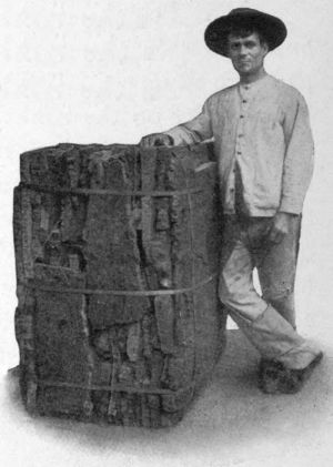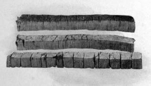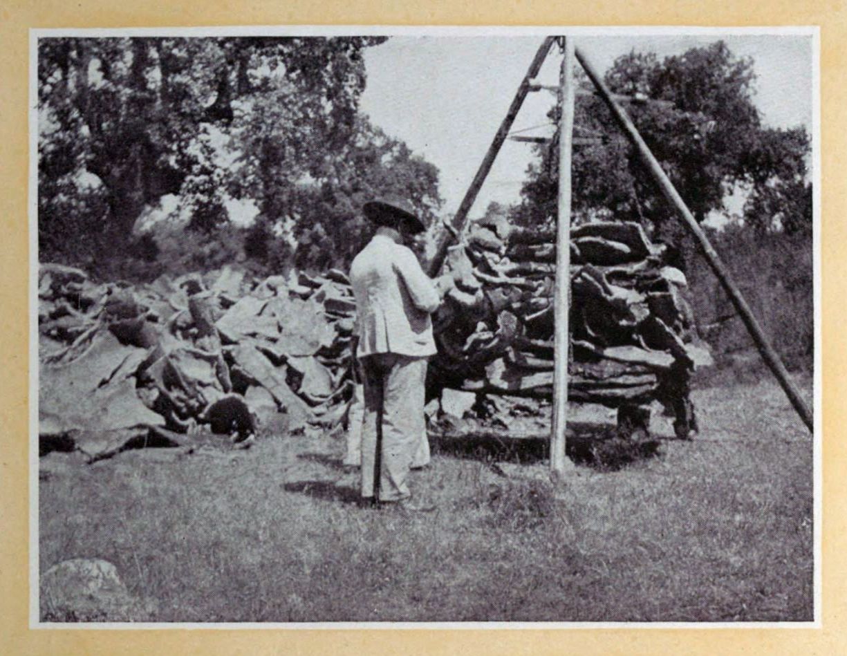 Inserting the wedge-shaped handle, the tree’s covering is then pried off, care being taken not to injure the inner skin at any stage of the process, for the life of the tree depends on its proper preservation; and if it is injured at any point, growth there ceases and the spot remains forever afterward scarred and uncovered.