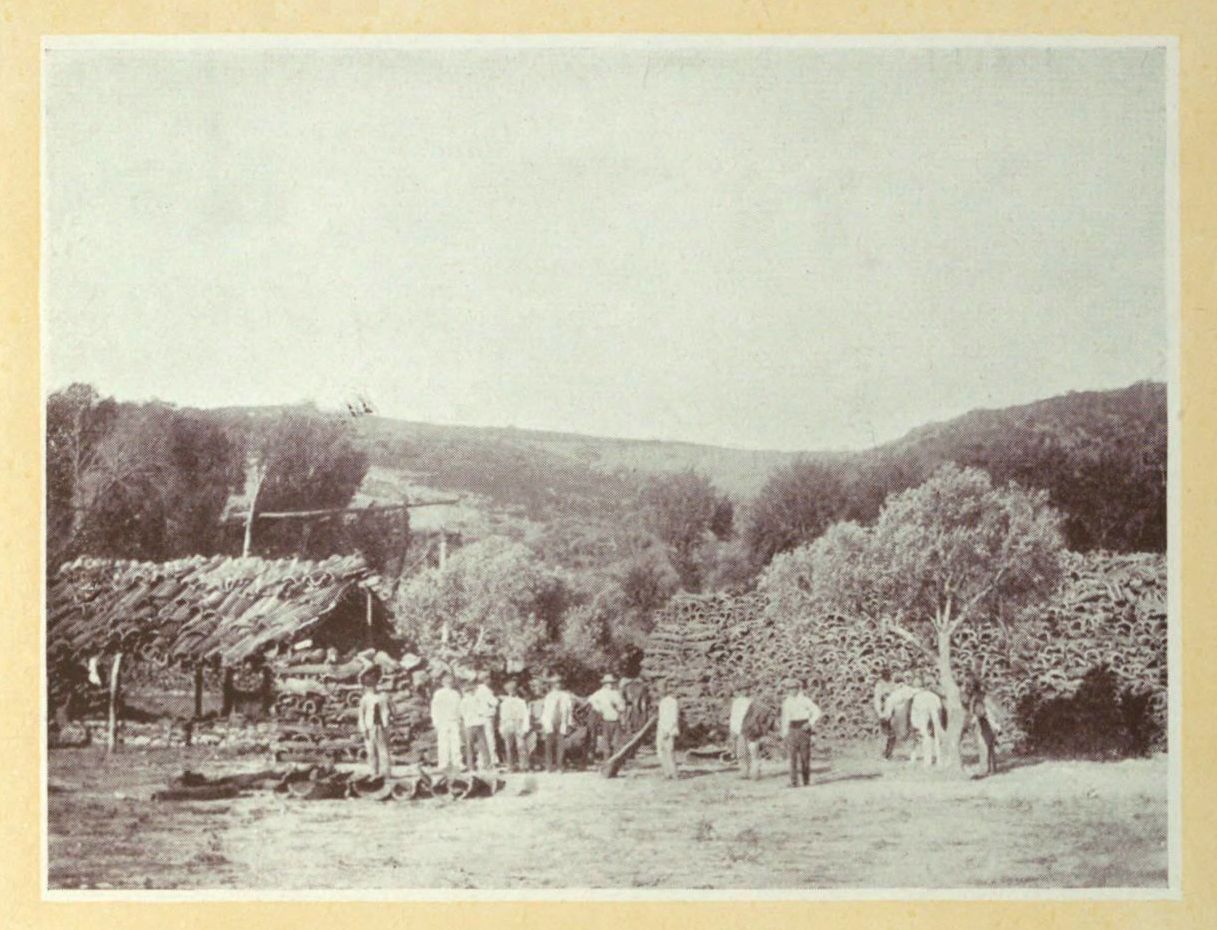 As the bark is removed it is gathered up in piles and left for a few days to dry. Having been weighed, it is next carried either in wagons or on the backs of burros to the boiling stations, where it is stacked and allowed to season for a[Pg 18] few weeks. It is then ready for the boiling process, which at times is postponed until the crude material reaches Seville or some other shipping point.