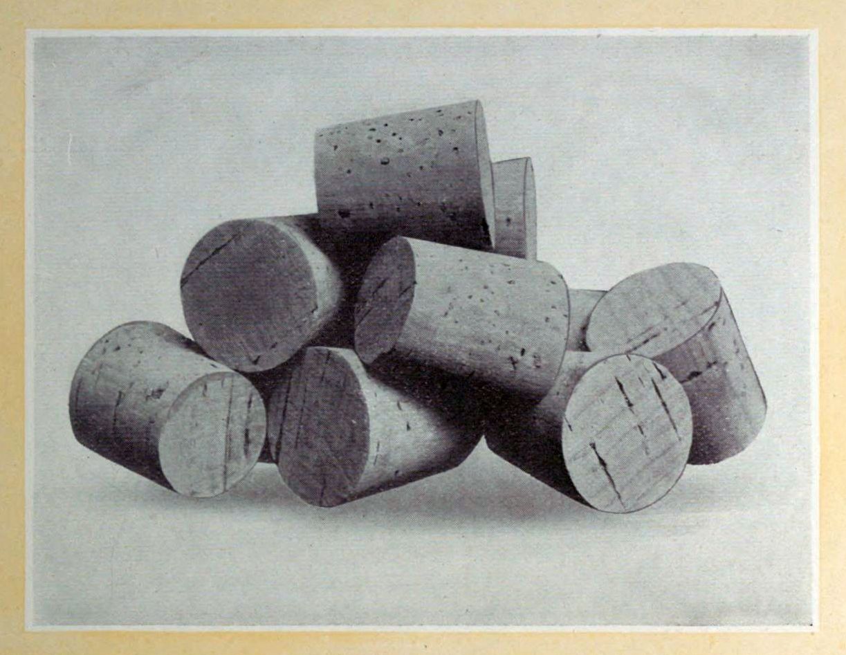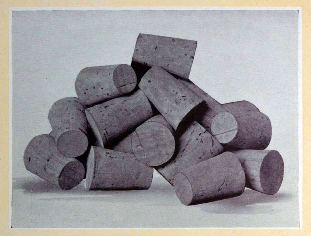 Besides, there are keg corks, hand cut corks, mustard and jar corks of large diameter, shell corks, perforated through the center, and glued corks made up of several layers, all of which must be put up in packages of suitable size, ready to be delivered to the shipping department for transportation to the consumer.