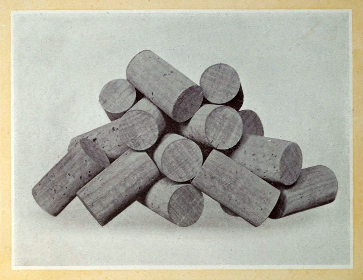 Free now from objectionable matter, the strips are cut into small rectangular blocks of the dimensions of the cork desired. In this process, just as in blocking, care must be taken to avoid defects in the bark, and at the same time to prevent waste. Passing to another department the rectangular pieces are rounded into proper shape.