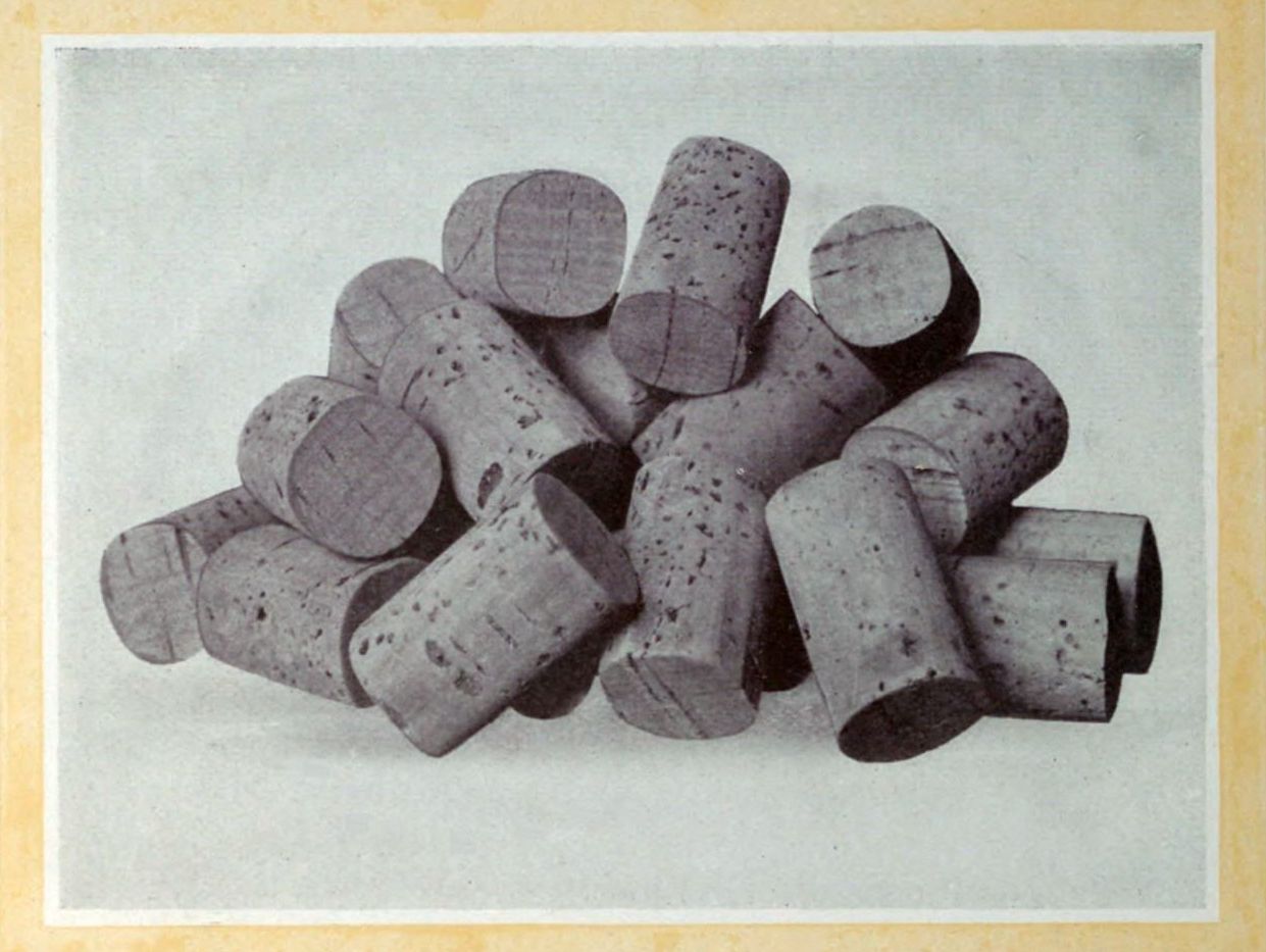 An order for a quantity of corks of a certain size and quality also involves, of necessity, the manufacture of a great many corks of other grades. The reason for this is, of course, found in the fact that the raw material, no matter how carefully sorted at the outset, will not produce a finished product of uniform quality. Thus frequently it becomes necessary to work over a given lot of corks for which there is no demand into a smaller size for which orders are pouring in.
