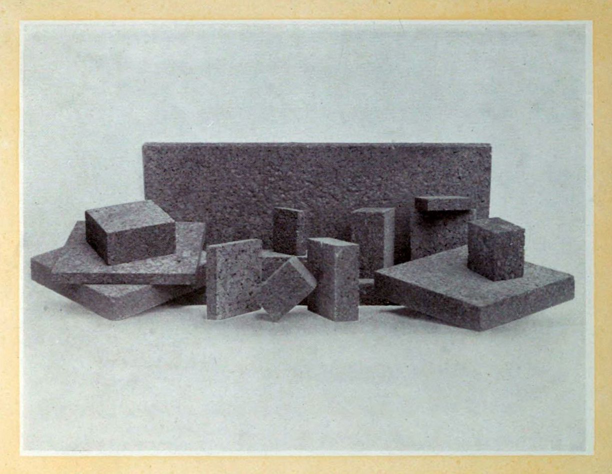 For loose filling between the walls of ice boxes, water coolers, and cold storage rooms, and about the sides of freezing tanks in ice factories, hundreds of tons of[Pg 44] granulated cork are employed every year. Comparatively recently, however, an insulating material possessing permanency of form has been found desirable for many reasons.
