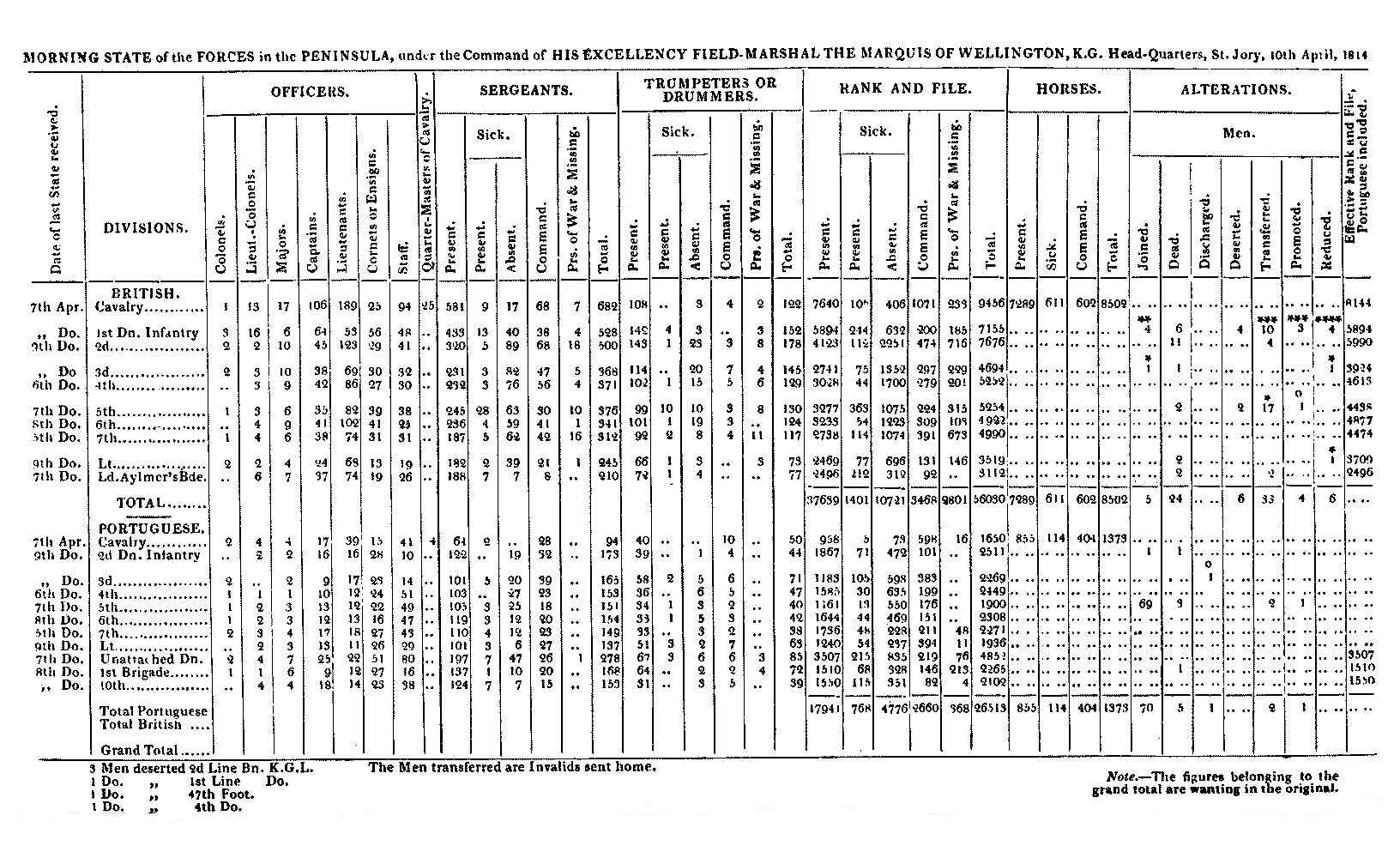 | Note and morning state of the Anglo-Portuguese on the 10th of April, 1814 | 710 |