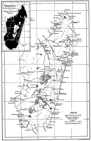 I have been also indebted to a long course of reading on mission work at large, and on the work in Madagascar in particular. Much of this has become so mingled with my own thoughts that I cannot now possibly trace all the sources of it; but I have tried, as far as I could, to make acknowledgement of all the sources of information to which I have been indebted, and special acknowledgement of those more recent sources of information not alluded to in any other book on Madagascar. There are many things in this book derived from native sources that have not been utilized before.