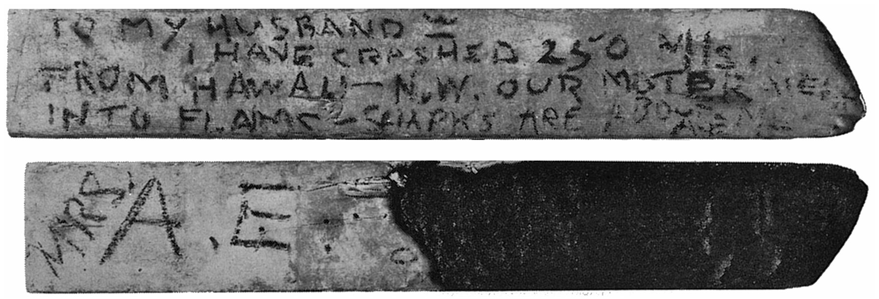 For most of the facts of the last flight—and many readers would wonder how I came upon them, I found them in AE’s logs, which she sent home with her other gear before the take-off from Lae, New Guinea. Some of the logs are now at Purdue University; these and others GP used for AE’s book Last Flight, which he arranged for publication. The communications between AE and the Itasca came from the cutter’s radio log, which Commander W. K. Thompson included in his official report, dated July 19, 1937. Some of the details of the Navy’s search were obtained from the228 deposition of the Lexington’s commanding officer, Captain Leigh Noyes, dated October 4, 1938, and from the affidavit of Richard D. Black, dated November 22, 1938. These three documents are in the possession of Clyde E. Holley, AE’s former attorney, in Los Angeles, California.