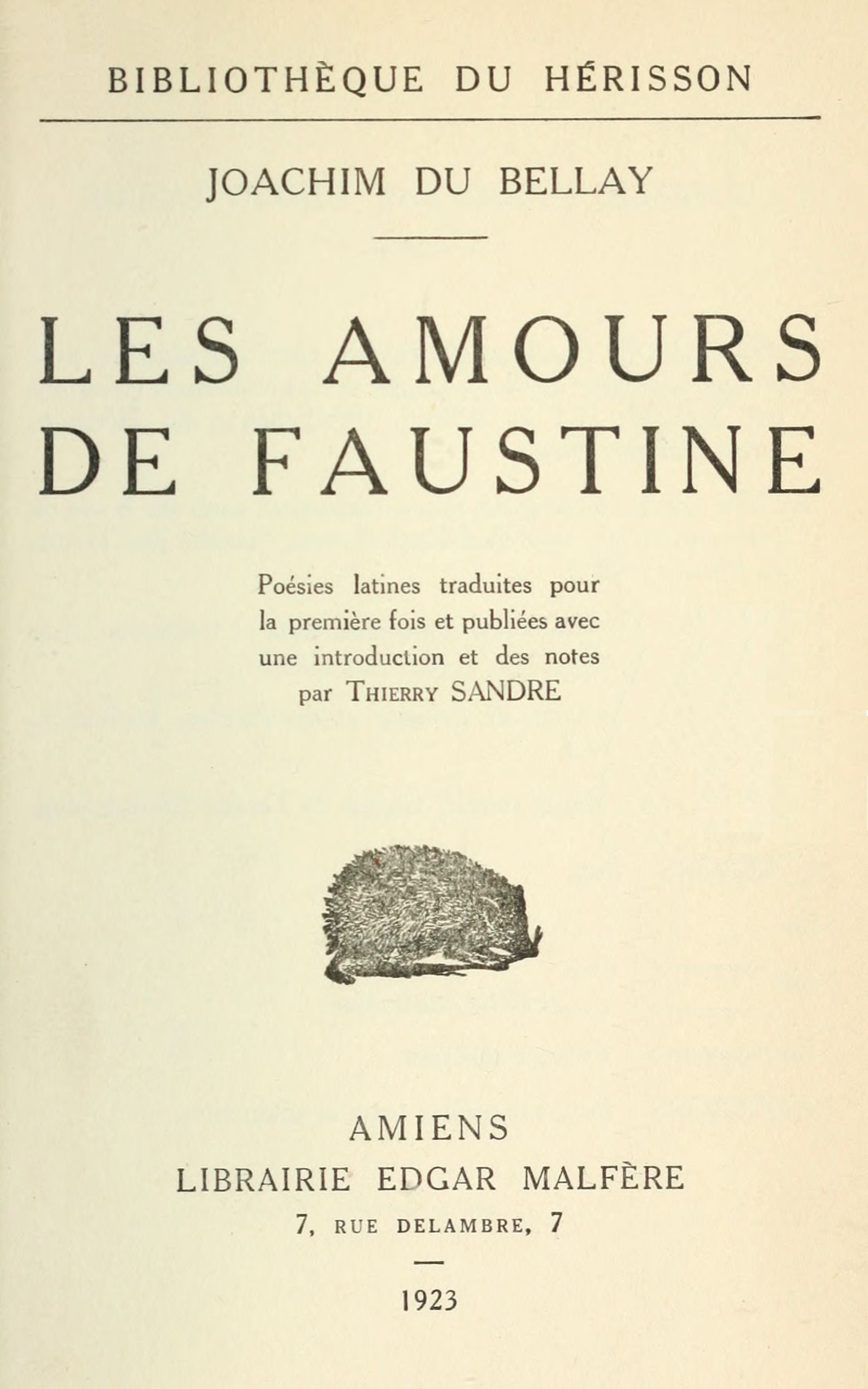 Il paraît qu’on ne lit plus le latin, depuis longtemps déjà. On ne le lit plus surtout parce qu’on ne nous y intéresse plus. Qu’on nous apporte une traduction d’un bon ouvrage que nous ne connaissons pas : nous aurons envie d’en voir l’original. Mais, dira-t-on, y a-t-il encore de bons ouvrages que nous ne connaissions pas ? Il y en a malheureusement beaucoup, beaucoup trop ! La littérature latine du Moyen-Age est considérable ; nous n’en savons pas grand’chose ; et toute la littérature française du XVIe siècle est doublée d’une littérature latine dont nous ne savons à peu près rien. Quel vaste champ à explorer ! Que de découvertes à faire ! Plus d’un chapitre de nos histoires littéraires y gagnerait une lumière utile. On laisse presque toujours dans l’ombre les poésies latines de nos poètes français. Les rares historiens qui les ont consultées y ont cependant trouvé des renseignements précieux. Ainsi certains détails de la vie de Joachim du Bellay ne nous sont venus que de ses Poëmata. Néanmoins il ne suffit pas d’accorder à ces œuvres latines une valeur historique ; il faut aller plus loin, les considérer pour elles-mêmes ; elles ont une importance littéraire indiscutable. Il est temps de le répéter à ceux qui n’osent pas le croire, et de l’apprendre à ceux qui ne s’en doutent pas. C’est à leur intention que l’on publie ici une traduction des Amours de Faustine. Elle vaut ce qu’elle vaut ; elle vaudra beaucoup, si elle incite à lire ou à relire le texte latin de Joachim du Bellay. Elle n’a pas d’autre ambition : les Poëmata n’avaient jamais été traduits.