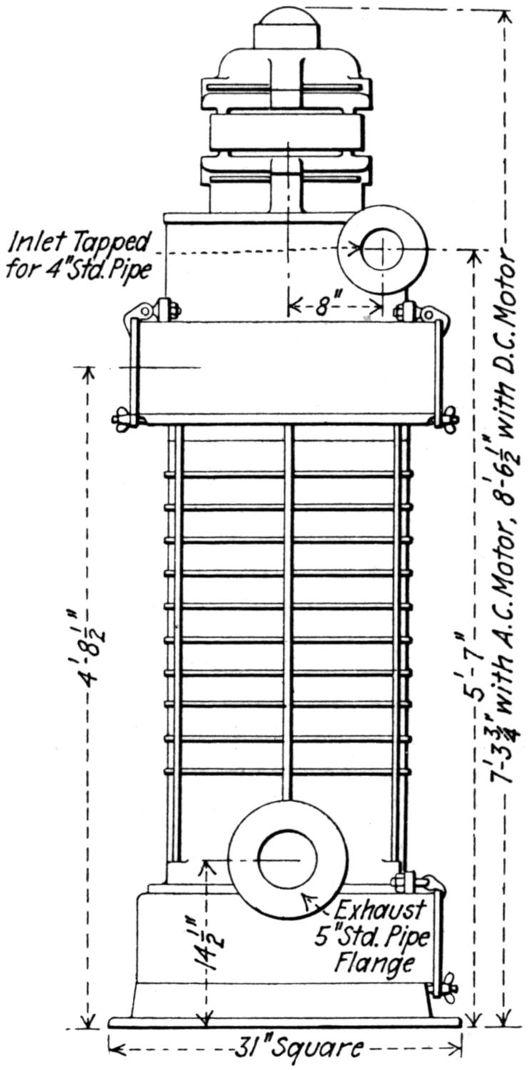 18a. Base Plate, Foundation, etc. Provide suitable base plate to rigidly support the exhauster and its motor as a unit, which shall be large enough to catch all drip of water or oil. Provide a raised margin and pads for feet of exhauster frame, motor,[220] and anchor bolts, high enough to prevent any drip from getting into the foundation or on the floor.