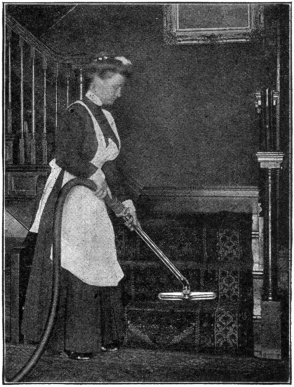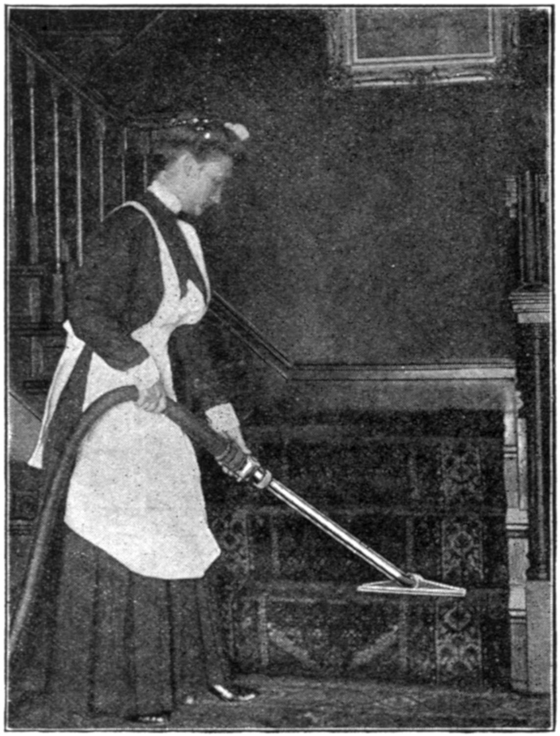 The statements made above apply to parties who own their residences and occupy offices in modern buildings. There are, besides these, a great many who live in rented houses and apartments or occupy offices in buildings where the owners are not sufficiently progressive to install stationary cleaning plants.[232] To supply the needs of this class is evidently the field of the portable cleaner, as even the poorest of these machines is more effective in the removal of dust and dirt than the broom and carpet sweeper.
