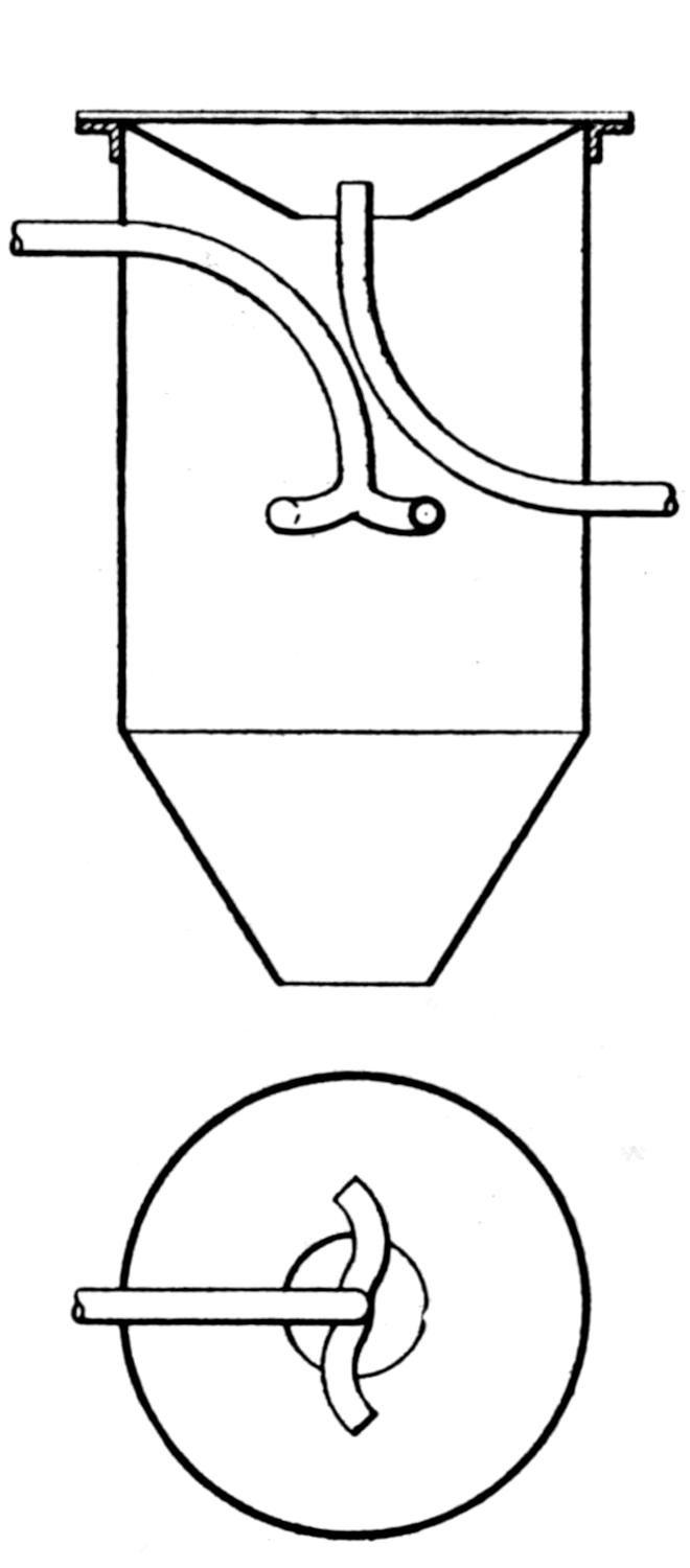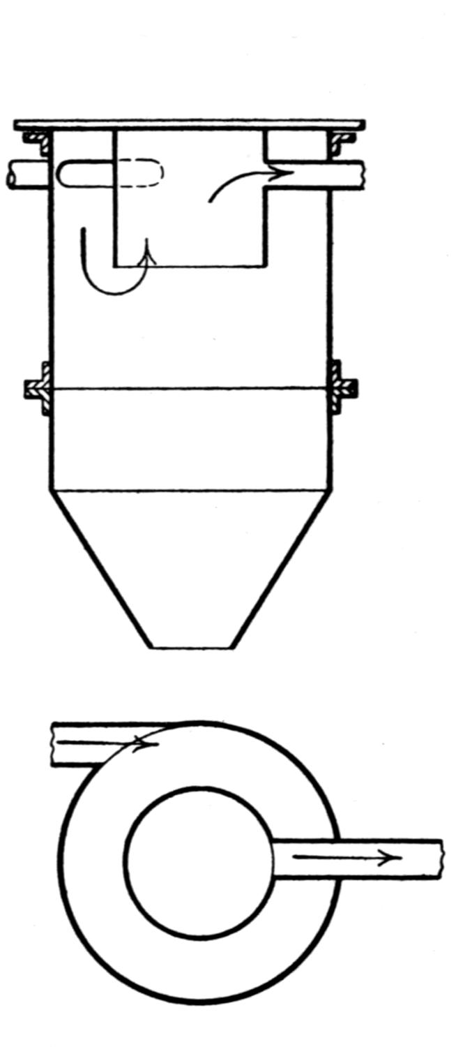 37. Dust Separators. There must be provided at least one separator between the pipe lines and exhauster having a volume of not less than 3 cu. ft. per sweeper of plant capacity. This separator must be so constructed that no part thereof will receive the direct impact of the dust. If rotary exhauster is used, this separator must also contain a bag so placed that only the lightest dust will reach same and must be arranged to be readily cleaned without dismantling the separator. If a centrifugal exhauster is used, this apparatus may or may not contain a bag, and, if piston pump is used, this separator must contain no bags or screens whatever. If a piston type of exhauster is installed, an additional separator must be placed between the first separator and the exhauster. This must be a wet separator and may be contained in the base of the machine or consist of a separate tank.