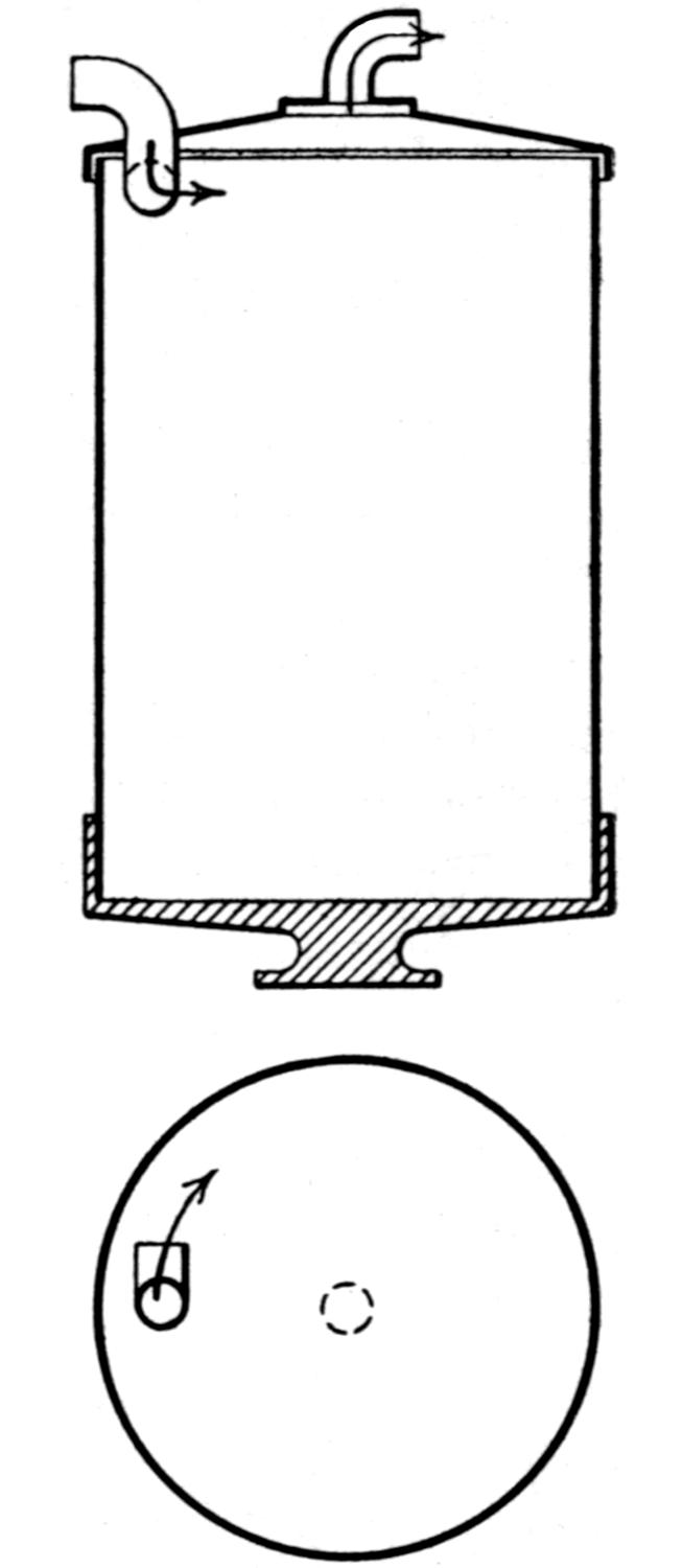 50a. If reciprocating exhauster is used, the exhaust pipe is to be fitted with an approved first-class muffler not less than 12 in. in diameter and 60 in. high, closely riveted and constructed of galvanized iron not less than ¹⁄₈ in. thick, and in event an exhauster requiring lubrication is furnished this muffler is to be arranged so that it will also be an efficient oil separator. Drip connection is to be arranged at bottom of muffler.