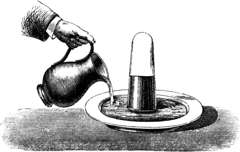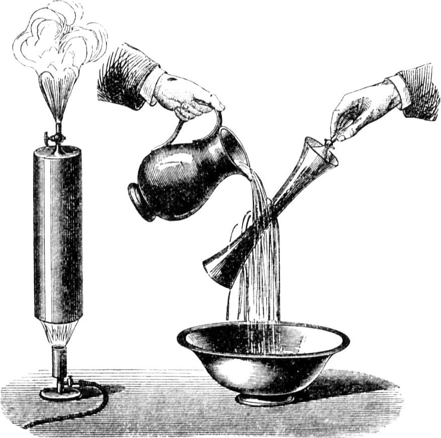 Also ein Kubikmeter Kohlensäure wiegt fast zwei Kilogramm. Diese Schwere des Gases kann durch viele Experimente ersichtlich gemacht werden. Hier nehme ich z. B. ein Glas, das nichts als Luft enthält, und versuche, aus dem da, das voll Kohlensäure ist, etwas hineinzugießen; ich bin nun begierig, ob etwas hineingeflossen ist oder nicht. Durch den Augenschein ist das nicht zu erkennen, wohl aber am Brennen meines Wachsstockes darin. Seht, da habt Ihr’s: die Flamme verlöscht, sobald ich das Gas in das tiefere Gefäß hineingieße. Noch deutlicher würde ich die Kohlensäure hier wiederum durch ihre Wirkung auf Kalkwasser nachweisen, die Ihr nun[161] schon so oft gesehen habt. Jetzt werde ich einmal den kleinen Eimer da in unsern Kohlensäure-Brunnen hinablassen – leider haben wir nur zu oft wirkliche Kohlensäurebrunnen – und wenn Kohlensäure da unten ist, muß er sich damit füllen, als ob es Wasser wäre; wir ziehen ihn wieder herauf, prüfen seinen Inhalt mit unserm Wachsstock, und da sehen wir’s – er ist voll Kohlensäure.
