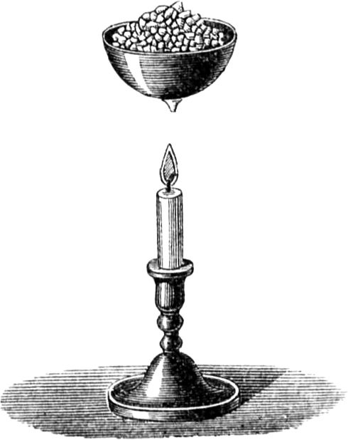 Wie wir bei Untersuchung der Verbrennungsprodukte unserer Kerze bereits das aufgefundene Wasser in seine Elemente zerlegten, so müssen wir jetzt auch die aus der Kerze entwickelte Kohlensäure auf ihre Bestandteile prüfen, und einige Experimente werden uns auch hier zum Ziele führen.