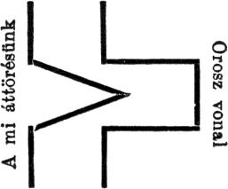 A honvédek a kirohanó tömeget maguk elé eresztik és összelövik, miközben Kestranek ezredei keservesen és vérezve nyomulnak a 158-as felé. A kettős nyomás alatt az orosz éjszaka megszökik a 158-as állásból, a mieink elhelyezkednek benne, most már két-három kilométerre állnak a leghatalmasabb orosz vár erőd-öve előtt. Két erőd néz velük farkasszemet: északon Koroszcyn, délen Kobilany. A kettő közt egy «útzáró támpont», messziről nézve olyan, -542- mint egy elegáns nyárilak terraszos kertje. Mind a két erőd teljesen modern és nagyszerüen felkészülve várja a támadást, a következő védő-fegyverzettel. Legkívül földalatti robbanó-aknák sora fogadja a támadót. Aztán meredeken emelkedik a mező és nyolcz-tíz sor szögesdrót-sövény van egymás mögött. Ezután mély árok következik, a melynek fenekén a szem elől elrejtve tizenkét-tizenöt sor szögesdrót.