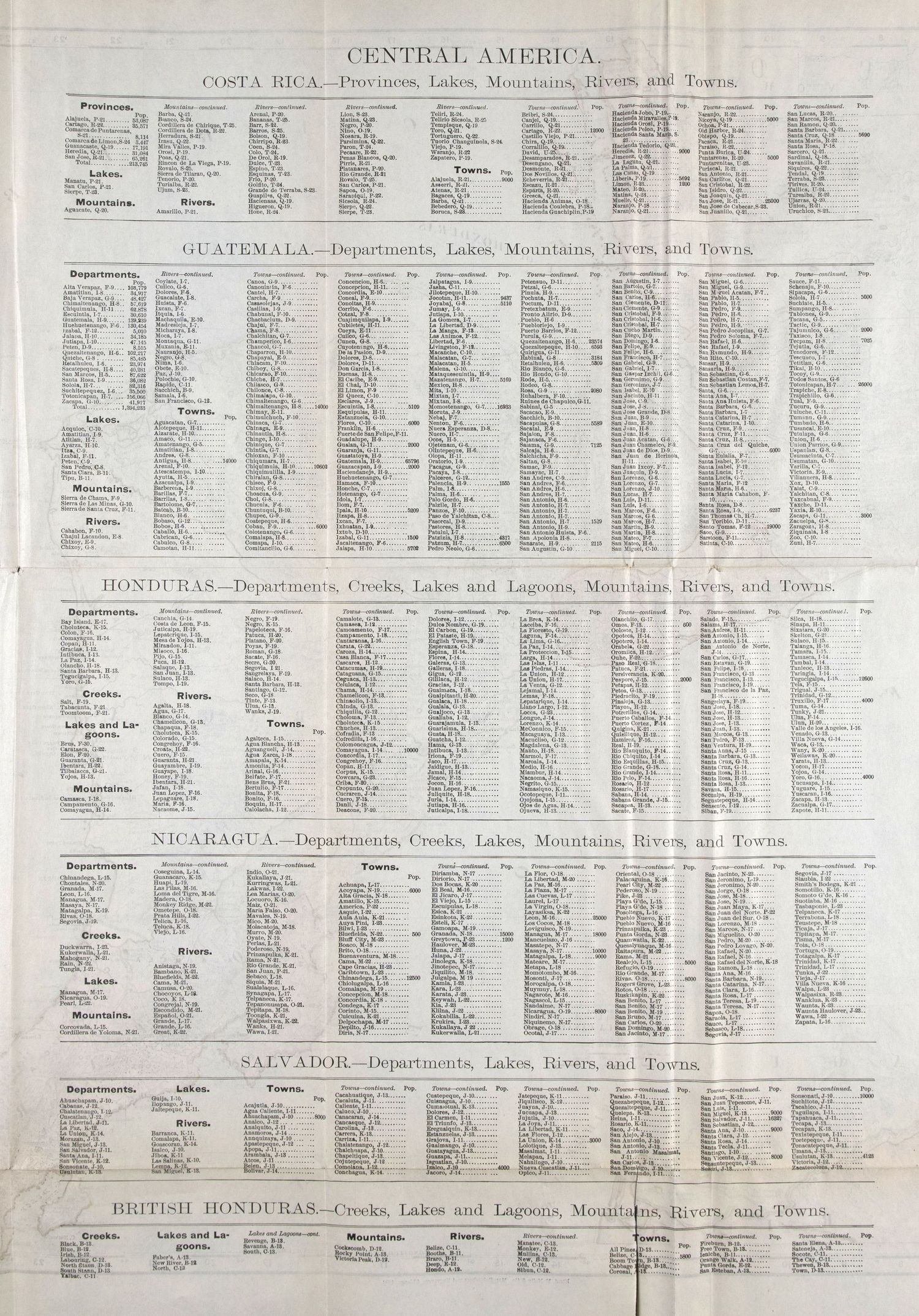Costa Rica is between 8° and 11° 16′ N. latitude and 81° 35′ and 85° 40′ W. longitude from Greenwich. Its area is between 54,070 and 59,570 sq. kilometers, the difference arising from the boundary line unsettled with Colombia. We follow here Colonel George Earl Church’s paper in the London Geographical Journal of July, 1897, which gives in a condensed form all important results of extensive explorations by Professor H. Pittier as well as well-written abstracts of important publications of the “Instituto fisico geografico Nacional” and of the “Museo Nacional” of Costa Rica.